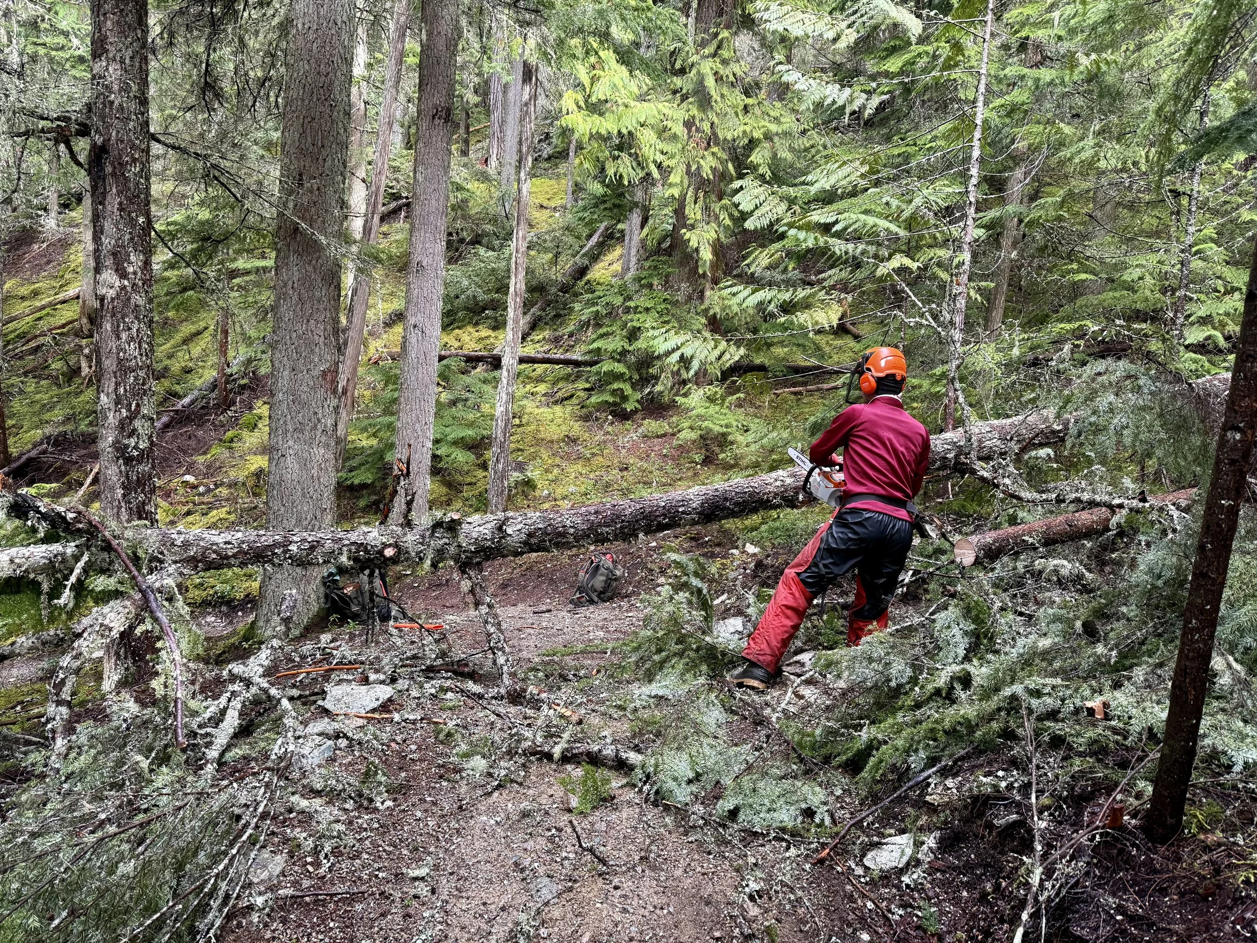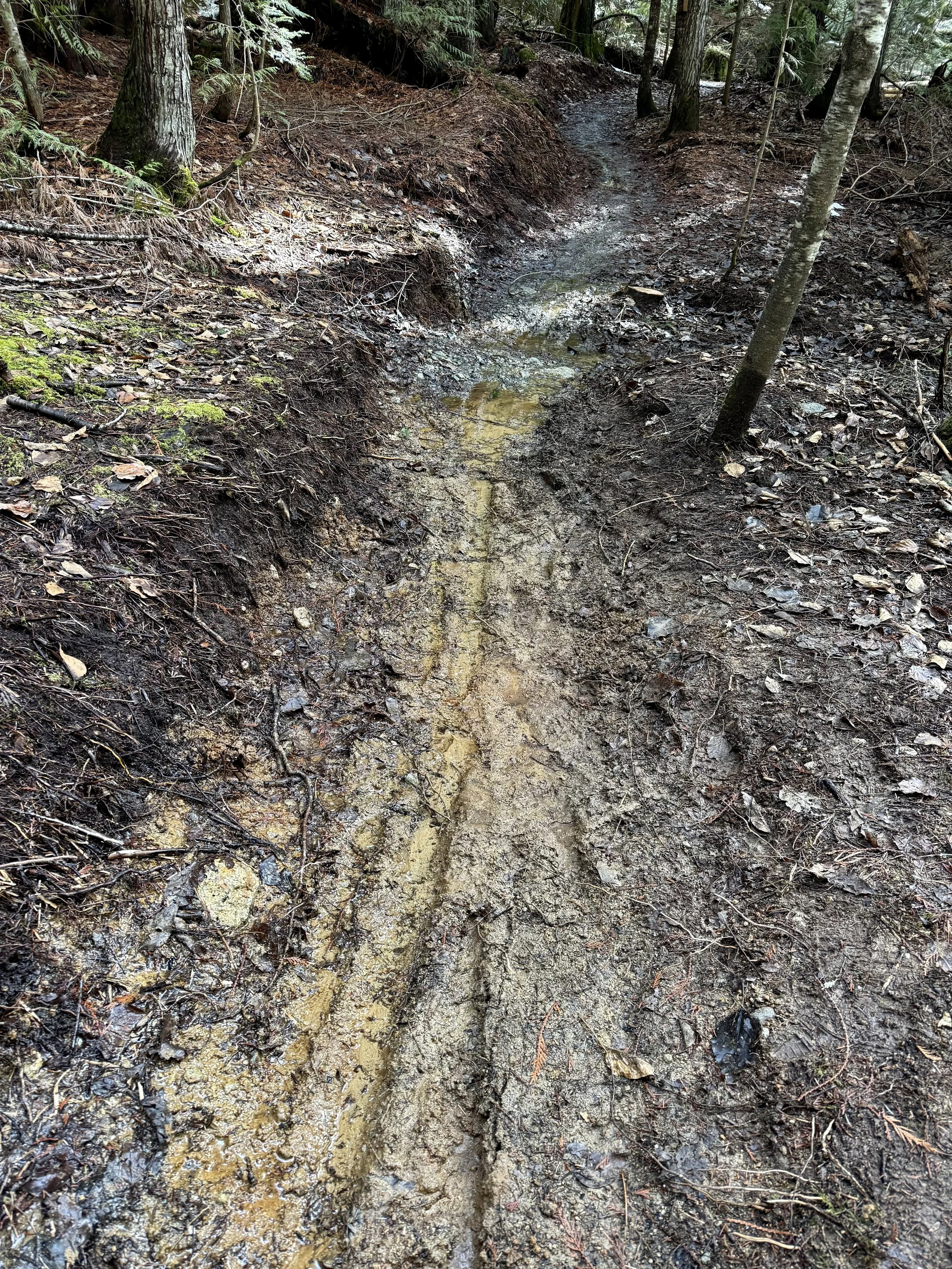 Please DO report what you find out there (deadfall, water damage, boulders…) through Trailforks. It helps if you include a picture of the problem with your bike or dog in the photo (for scale/urgency) so that we know what equipment will be required.