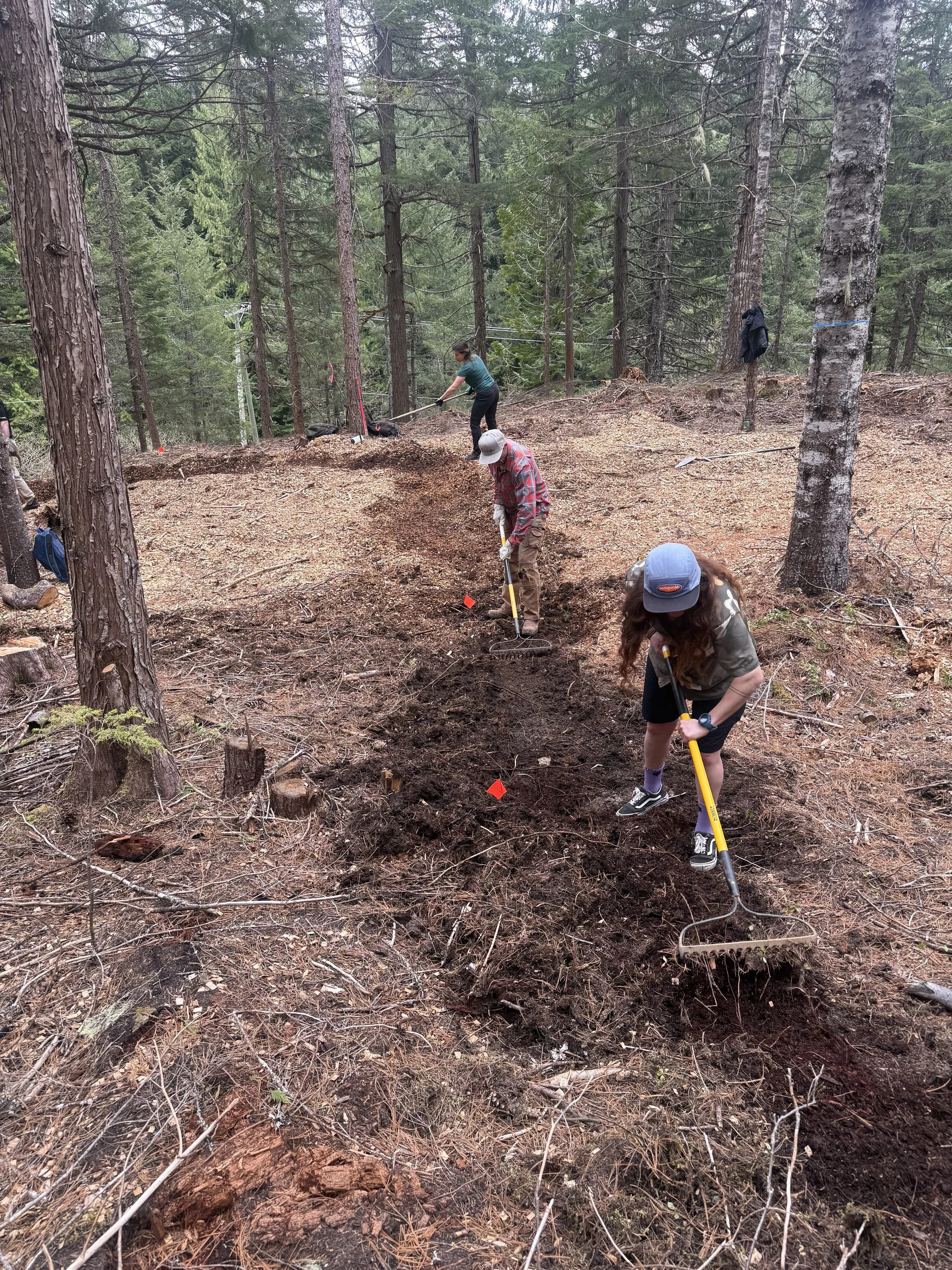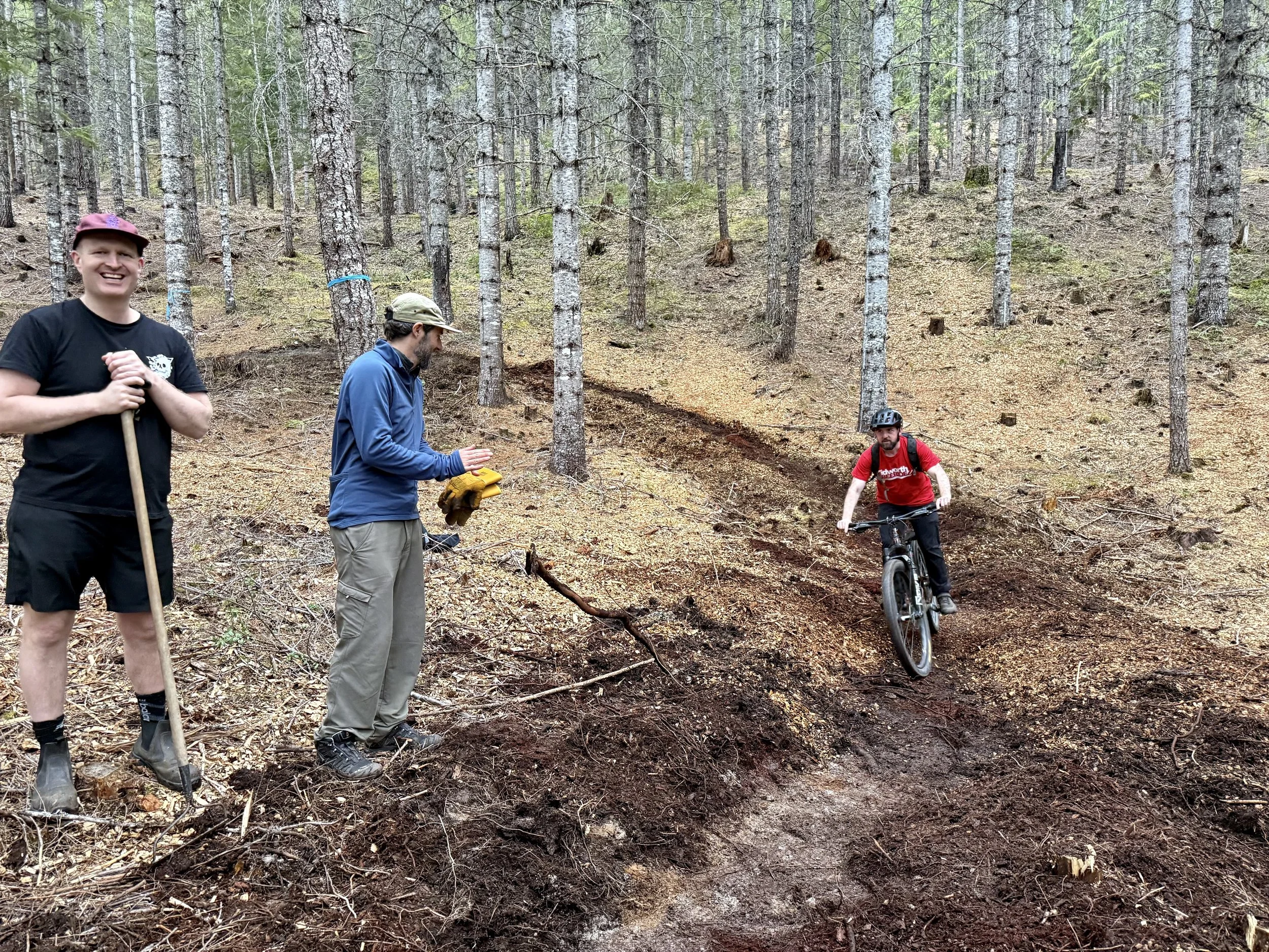 We kicked off the 2026 volunteer trail nights with a push to reclaim sections of trail impacted by last year’s forest thinning through lower Beaver Pass. We were again presented with an opportunity to optimize the network value of the trails in this area: Beaver Pass would get modernized to a more downhill trending line and Hot Dog Pass could be redesigned into a well needed low elevation blue trail.