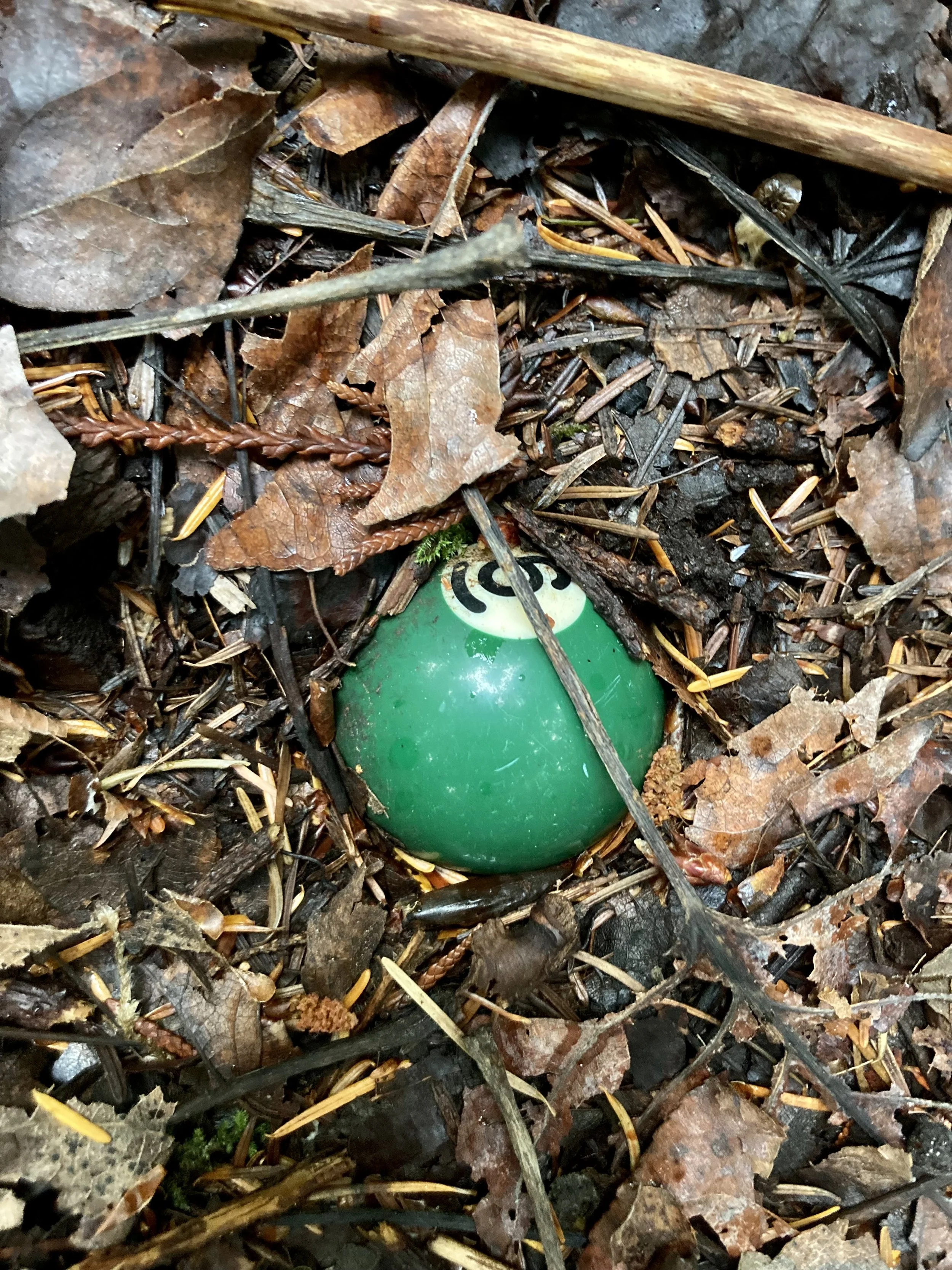 Wasps are not a problem when we get 30mm of rain in a day, but 30mm can feel like a swim when you’re bushwhacking. Despite wearing full rain gear, the dense second growth just south of Function Junction soaked me to the core. I was on a flagging mission in anticipation of a walk through with our region’s recreation officer. This is part of the approval process for the planned Mystic-Function trail. The area is steep and dense. My recent scouting missions remind me of 2014 when I started flagging “First Rule of Bike Club”... which ultimately became Lord of the Squirrels. It’s all exciting and daunting. This week’s walk led me back to a special view point and a decrepit squat. I found a pool ball quite literally in the middle of nowhere. And helium balloons. Seriously, those should be banned!