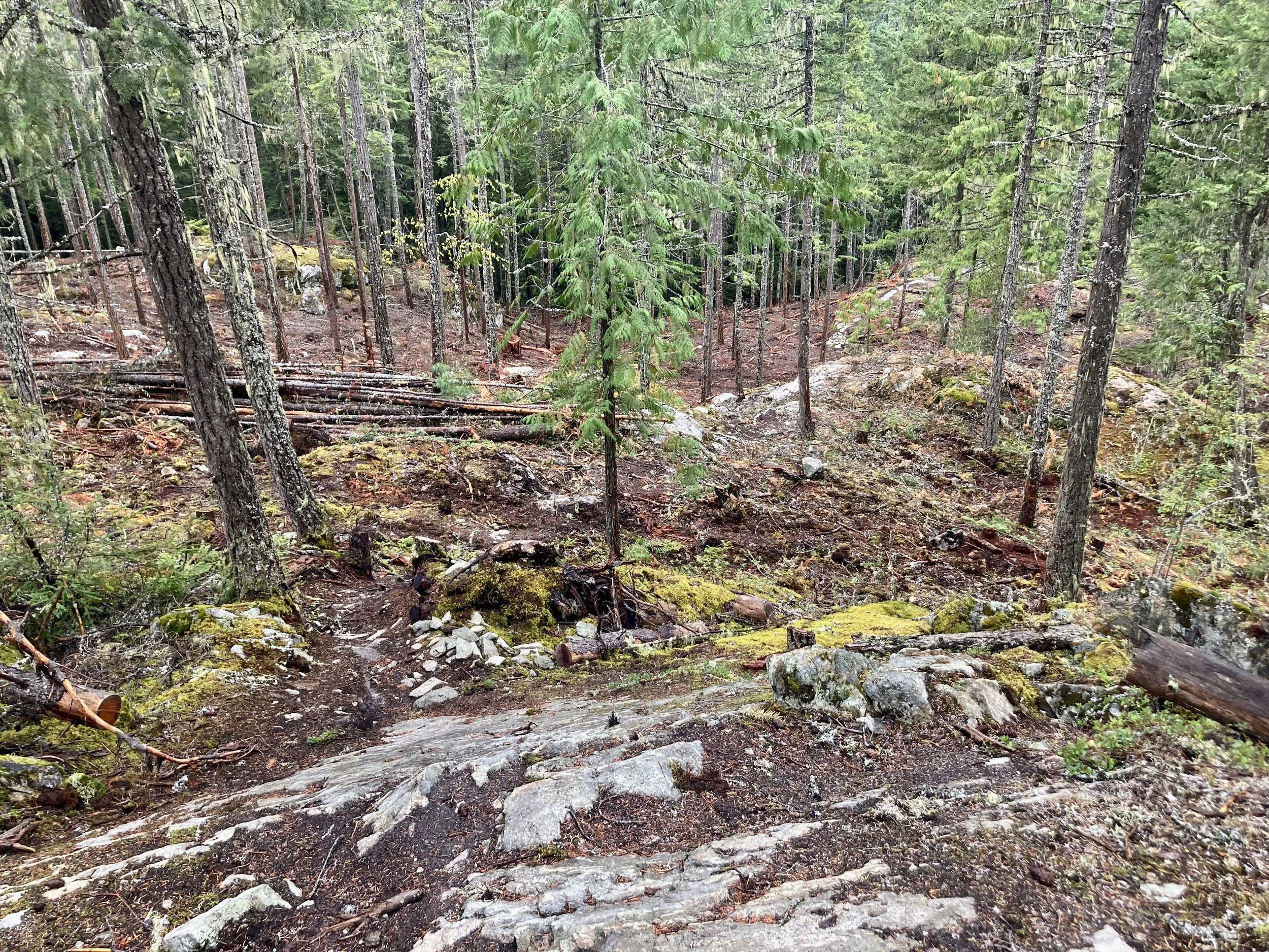 Further north, I ventured into High Hopes with Tim Haggerty to see how the fire thinning had affected the trail. Heavy machinery is still working in the area. They’ll be piling/chiping debris for another few weeks. We’ll let you know when it’s Good To Go! So please stay out of the worksite for a little bit longer. Tim and I discussed some redesigns to the trail and we’ll be asking you for help on Sunday September 15 for a volunteer dig morning. Details coming soon!