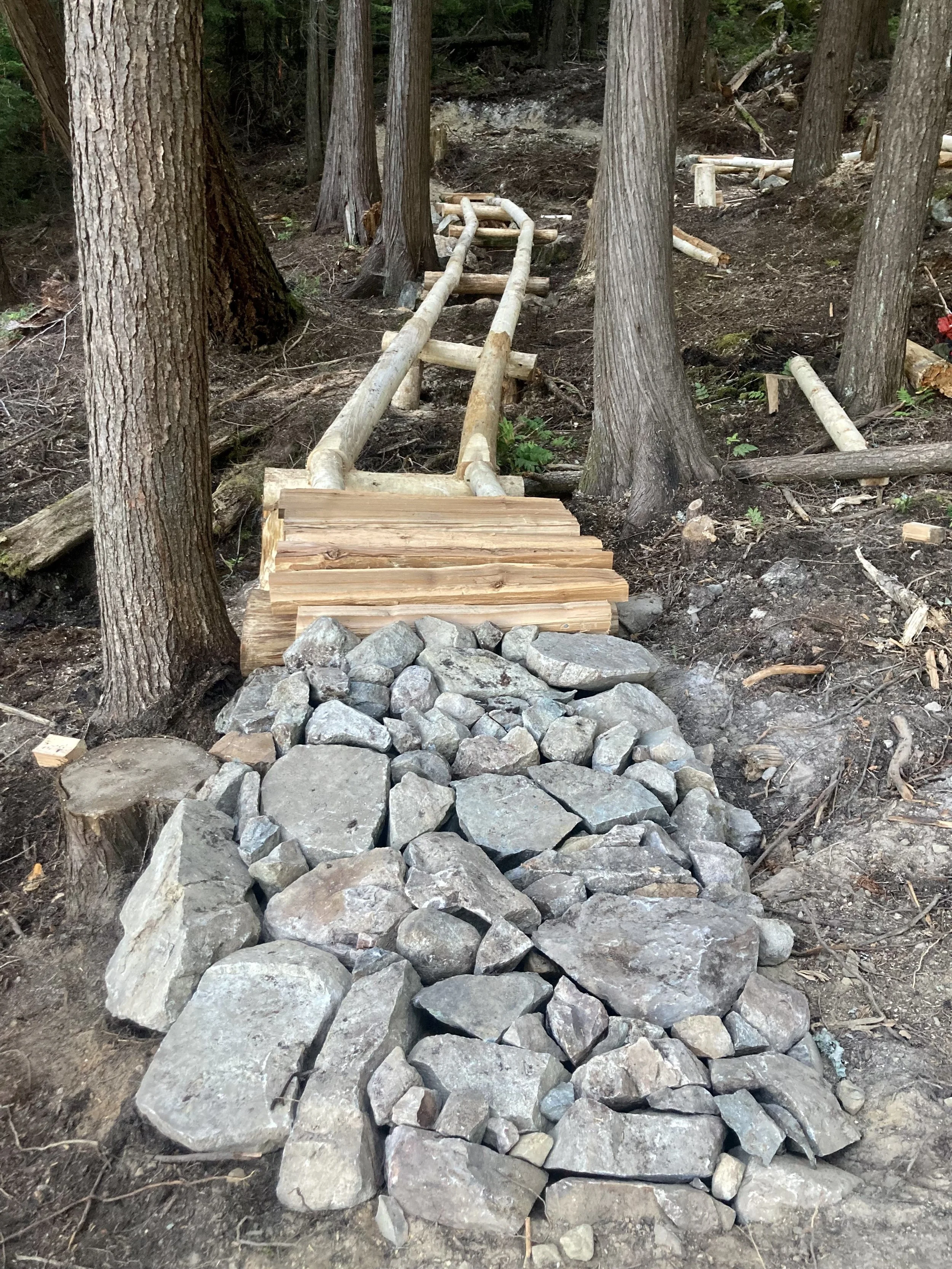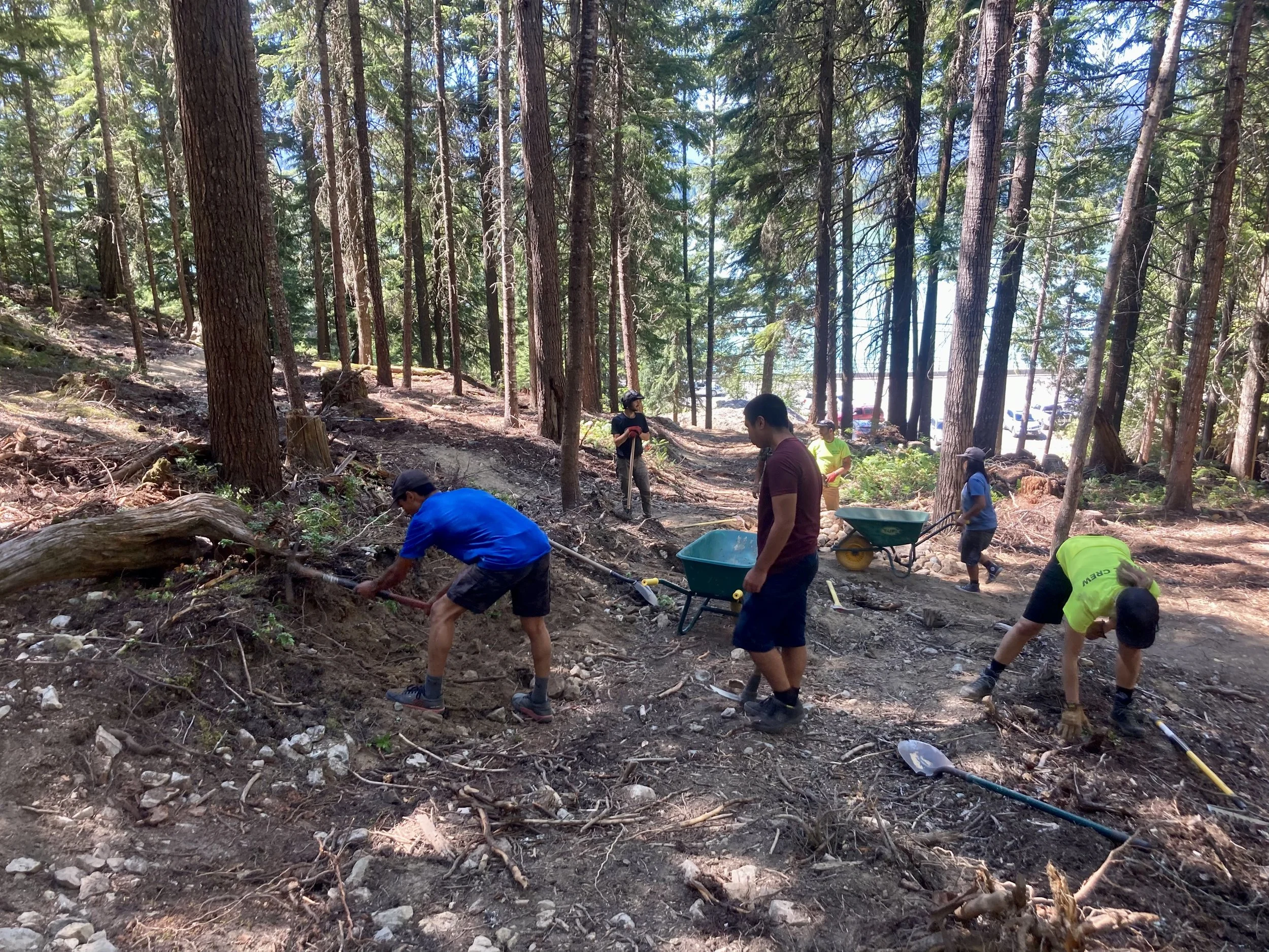 I’d like to send a huge thank you to Sandy, Morgan and their athletes for helping on this section, plus, Heather from the Cheakamus Community Forest for providing transport for the participants! Speaking of the CCF, Heather (Executive Director) will hold an information walk on Monday, July 15 (meeting at 5:15) at the Whistler Interpretive Forest parking lot. Interested community members can join a light walk looping the valley trail, and Enter Riverside trail. It’s a chance for people to ask any questions they might have about the Cheakamus Community Forest. Please RSVP info@cheakamuscommunityforest.com to join.
