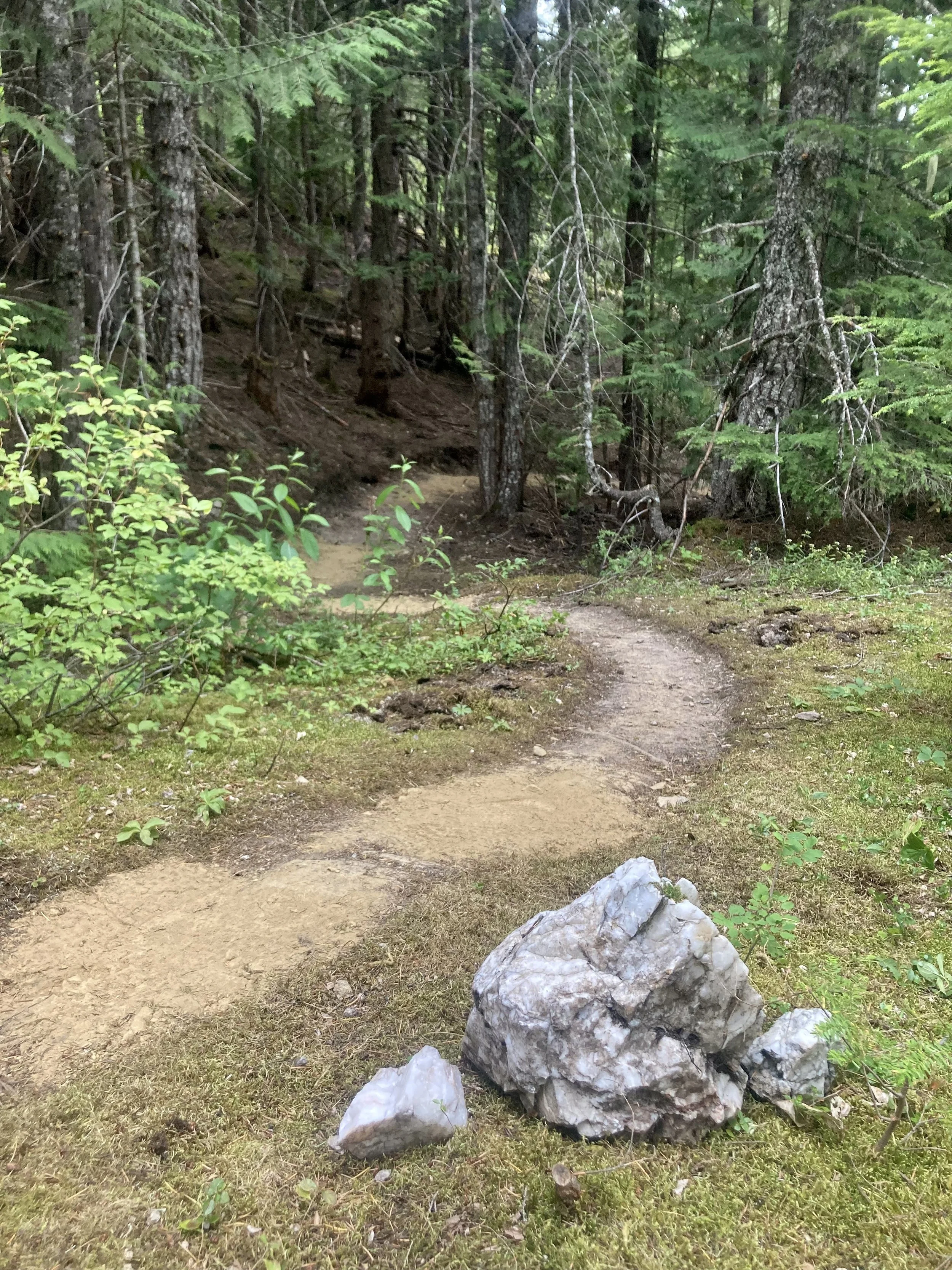 The long anticipated (by me) missing link of the Dessert Platter was completed this week: Salted Caramel now connects A La Mode to Whipped Cream! We had saved the sweetest topping for last (it was also the most challenging to build). The crew hustled capping the trail and building the last bridge. I was giddy as we cleaned up the site, gathering tools and literally landscaping the trail’s edge. I had named the segment of trail before construction began and we serendipitously found large quartz crystals (salt!) all over the forest. Enjoy!