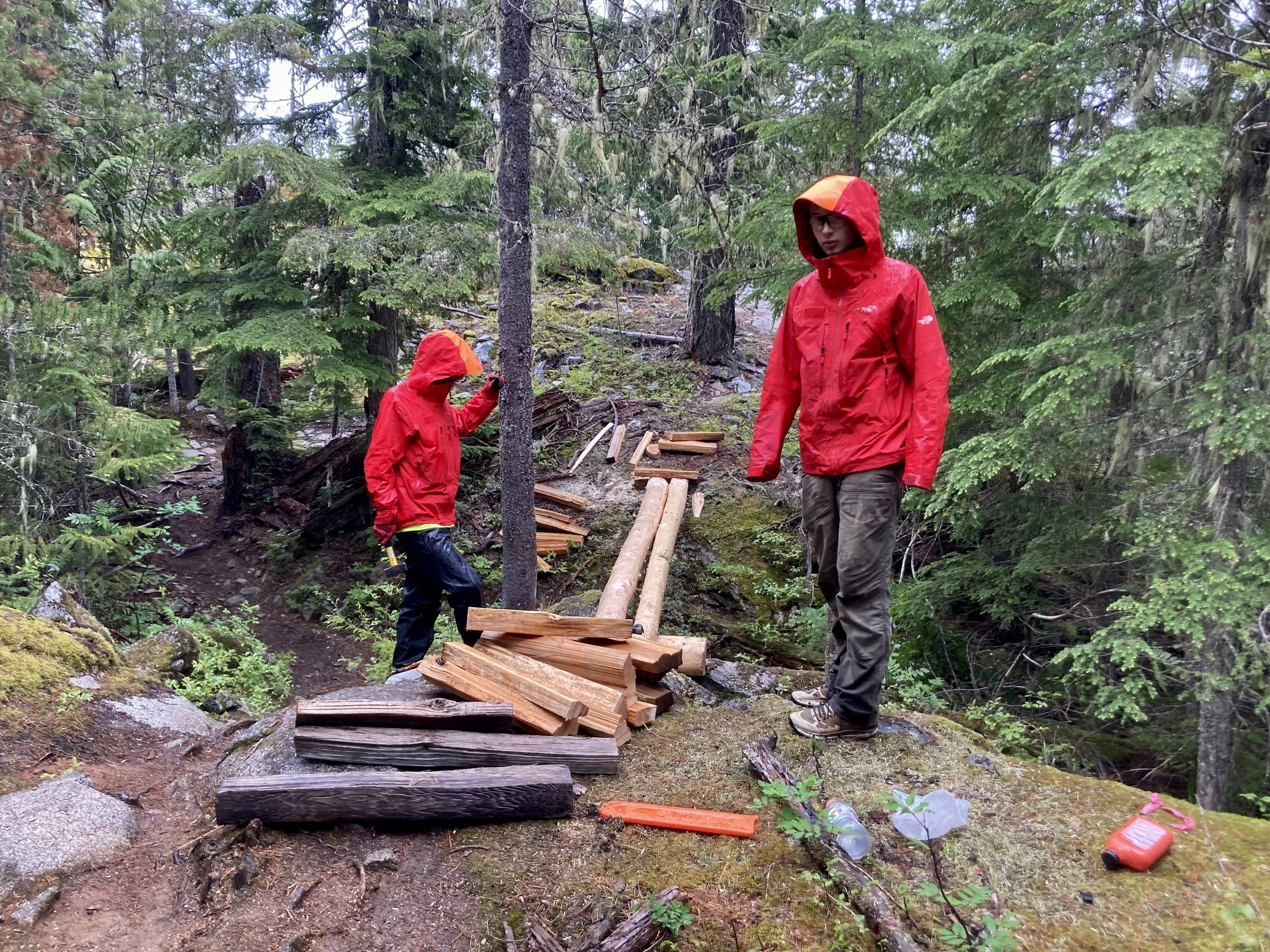 Tuesday dig nights returned to the regularly scheduled programming thanks to the welcome Juneuary weather. The catering crew served hot bowls of chili and McCoo’s brought even hotter swag giveaways. Progress on this week’s project (Flashback 4) has reached the next creek crossing which feels like a perfect point to pause this section. Next week we’re heading back up to Flashback 1 to get more unfinished business off of our to-do list. My fingers are crossed for the weather to cooperate…
