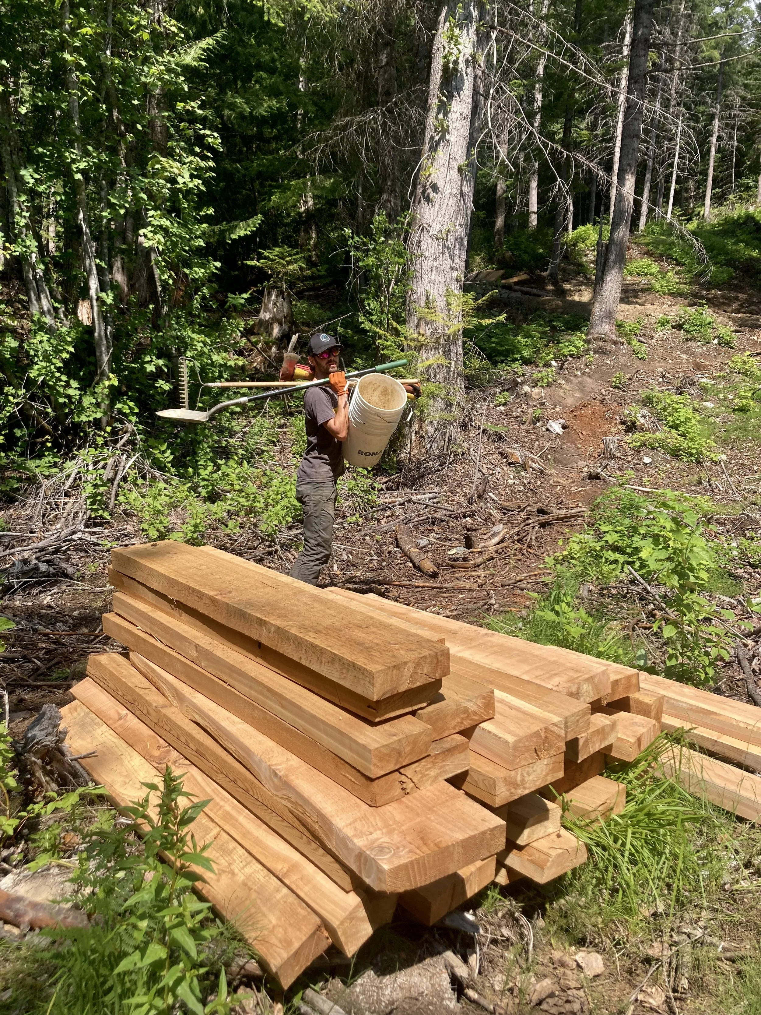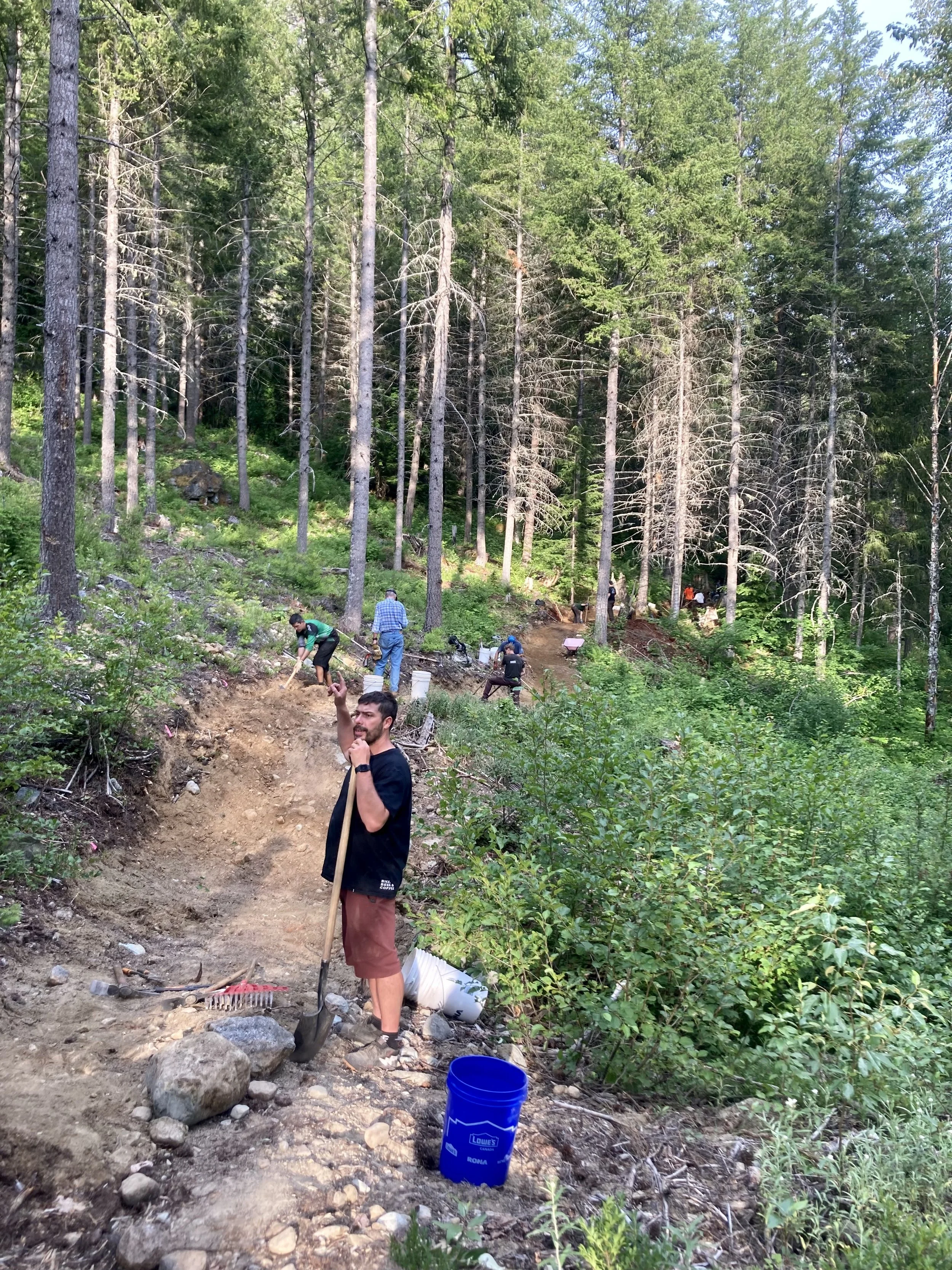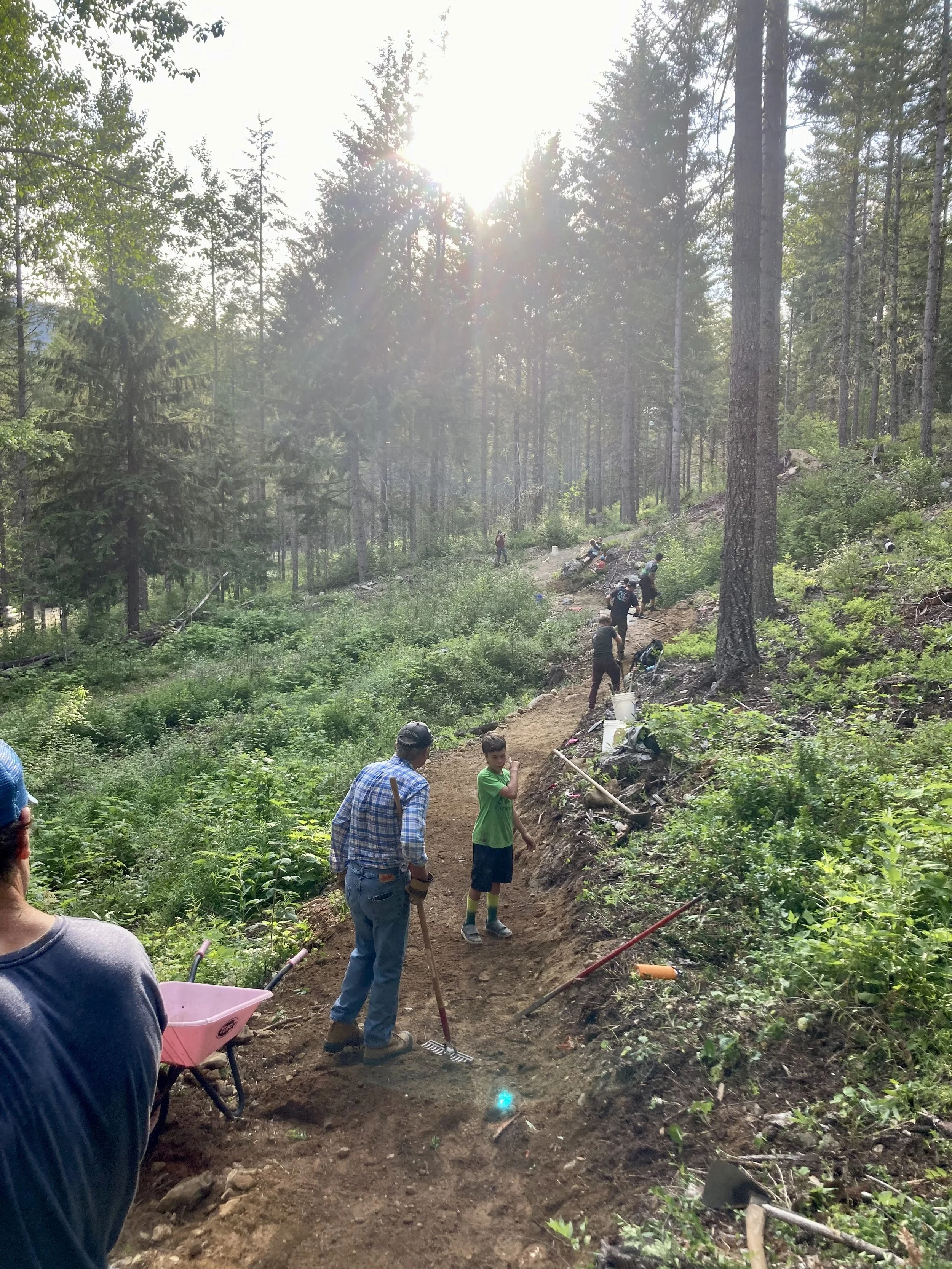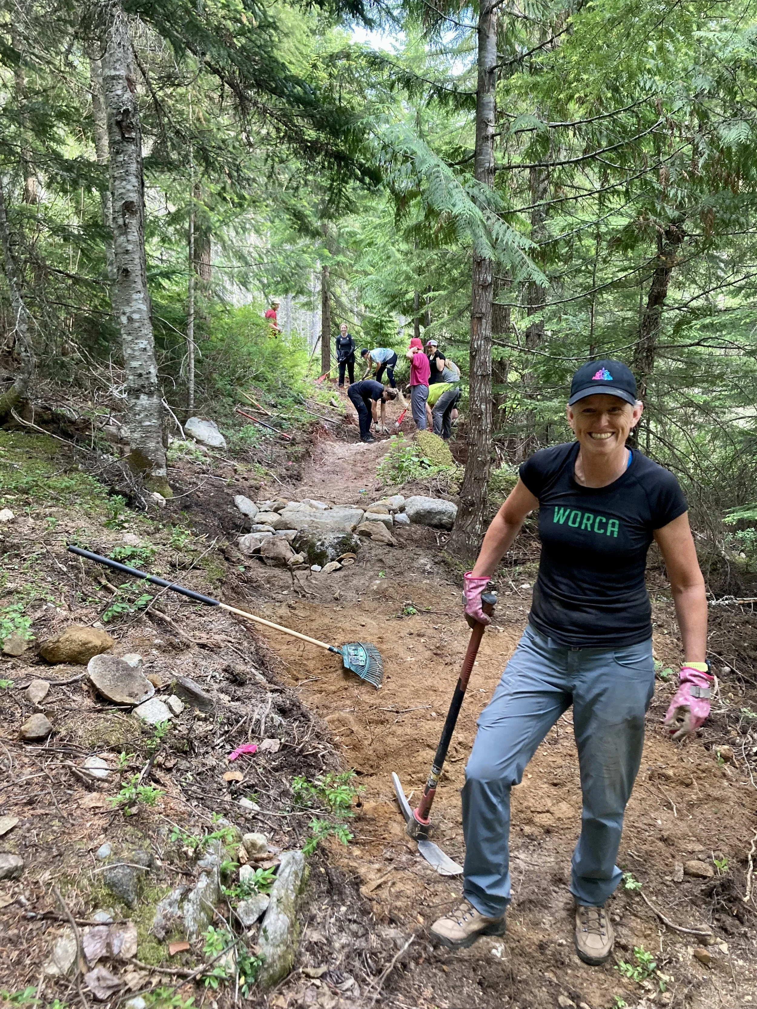 We were able to finish the spring Volunteer Trail Dig Night season with 2 events this week! The whole operation moved up to Flashback 1 and focused on finishing work on sections that were started last summer. Monday’s Women’s Dig Night crew worked to the beat of rolling thunder, widening the unfinished trail near See Colors and Puke. Fortunately, the skies proved to be more bark than bite sparing us a downpour. Tuesday’s volunteer crew returned to the swamp crossing. It was a logistical symphony where every piece of material extracted from widening one section was needed to construct and fill the trail in another. Rocks came from the right, dirt from the left all coming together to complete a challenging piece of trail through this ever oozing mountain side. Special thanks go out to Coast Trail Running and Grand Wall Electric for sponsoring these events! Trail nights are on summer hiatus until September so Tuesdays are for bike riding now…
