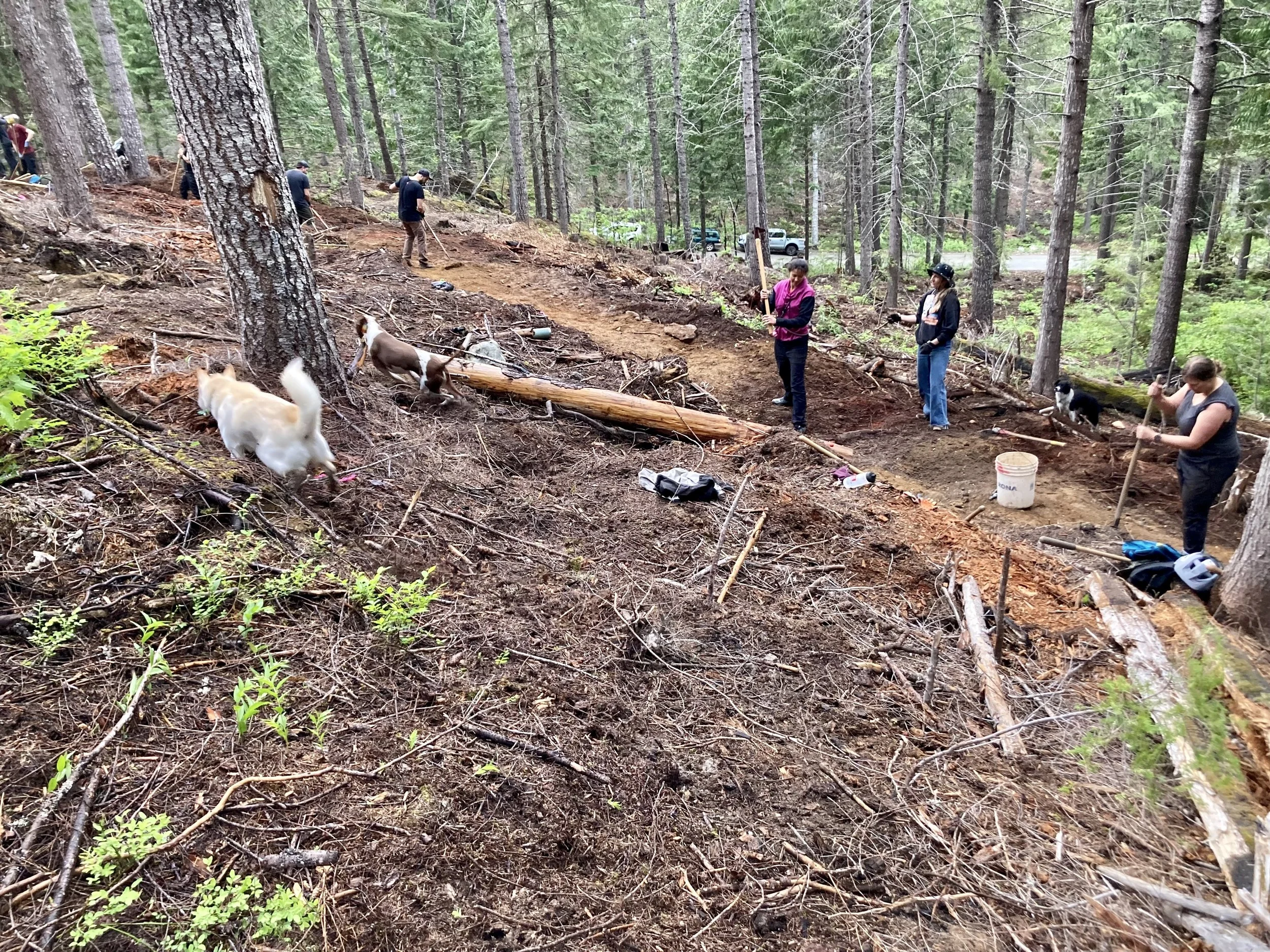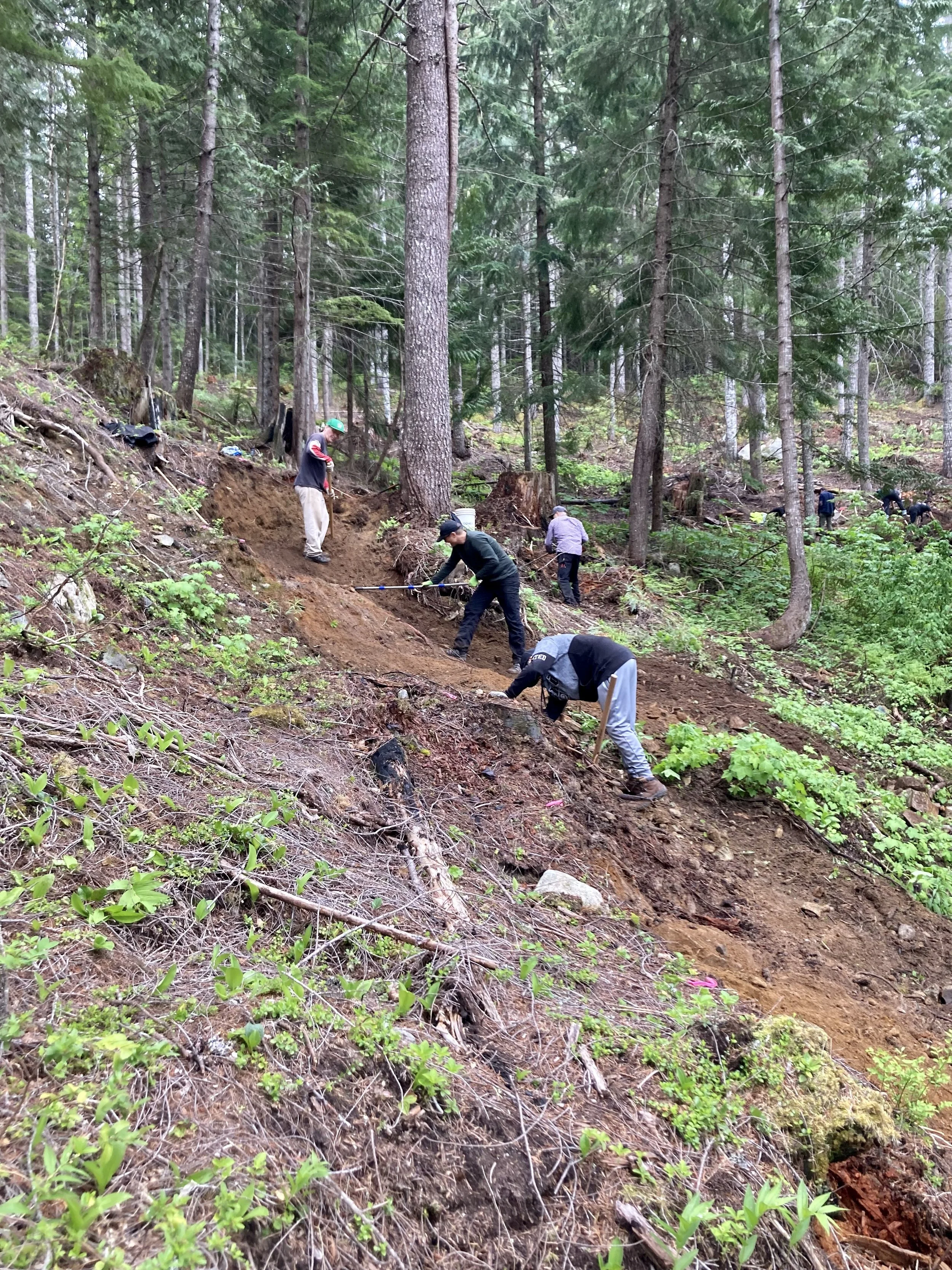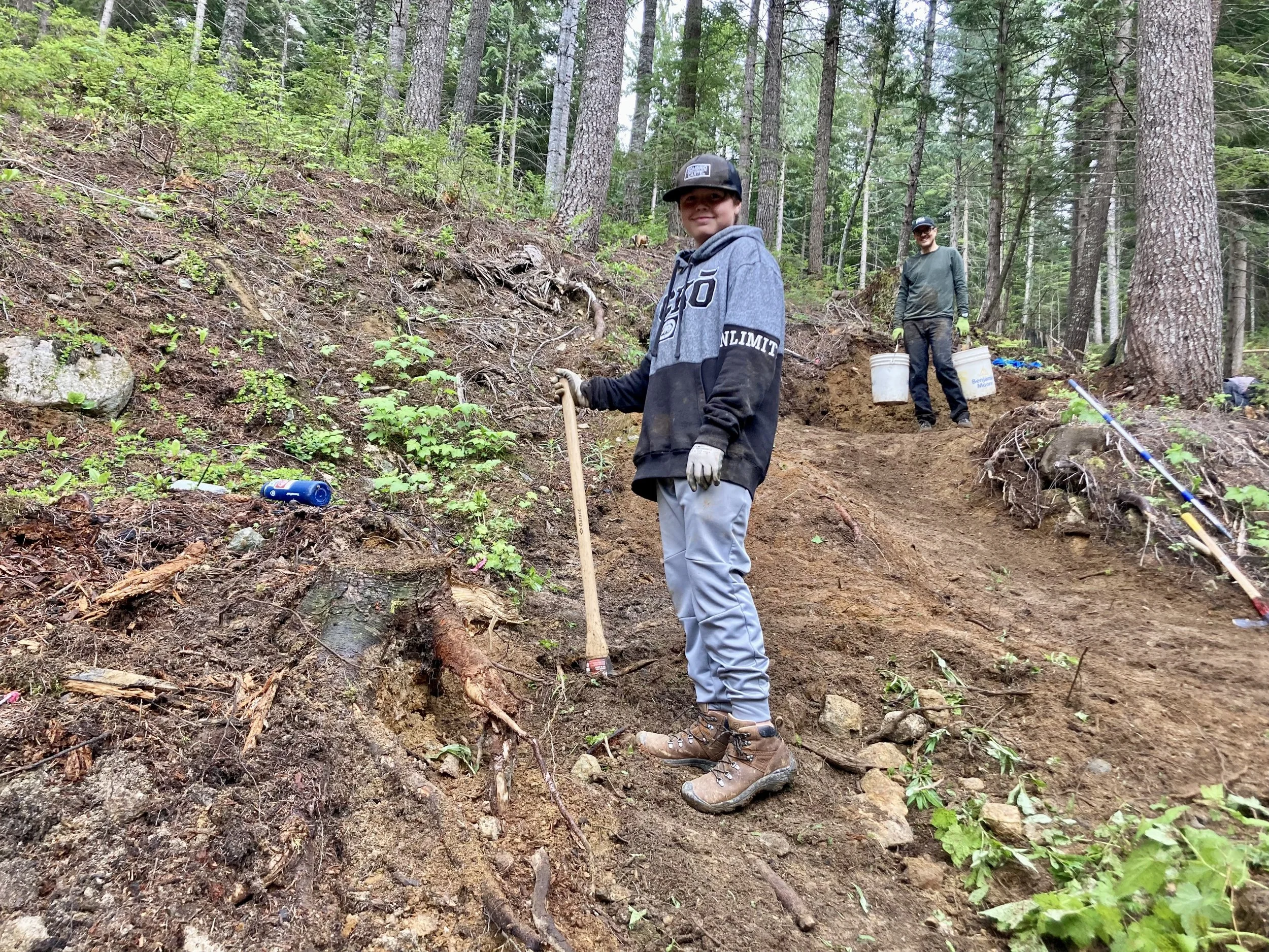 We spent Tuesday on Flashback, performing repairs in the currently open section before heading to the Tuesday dig night hosted by Yoann Barelli. Yoann is known for his Into the GNAR riding and it was funny to have him digging on a 4 foot wide climbing section of a blue trail! Great progress was made and the finished product looks mint! Ben made it the best dig night ever by bringing sour patch kids and Coast Mountain Brewing raspberry sour gose! Next week we’re hosting 2 (!) trail nights: Monday is a special Women’s Dig Night, plus our regular Tuesday event. Remember to sign up!