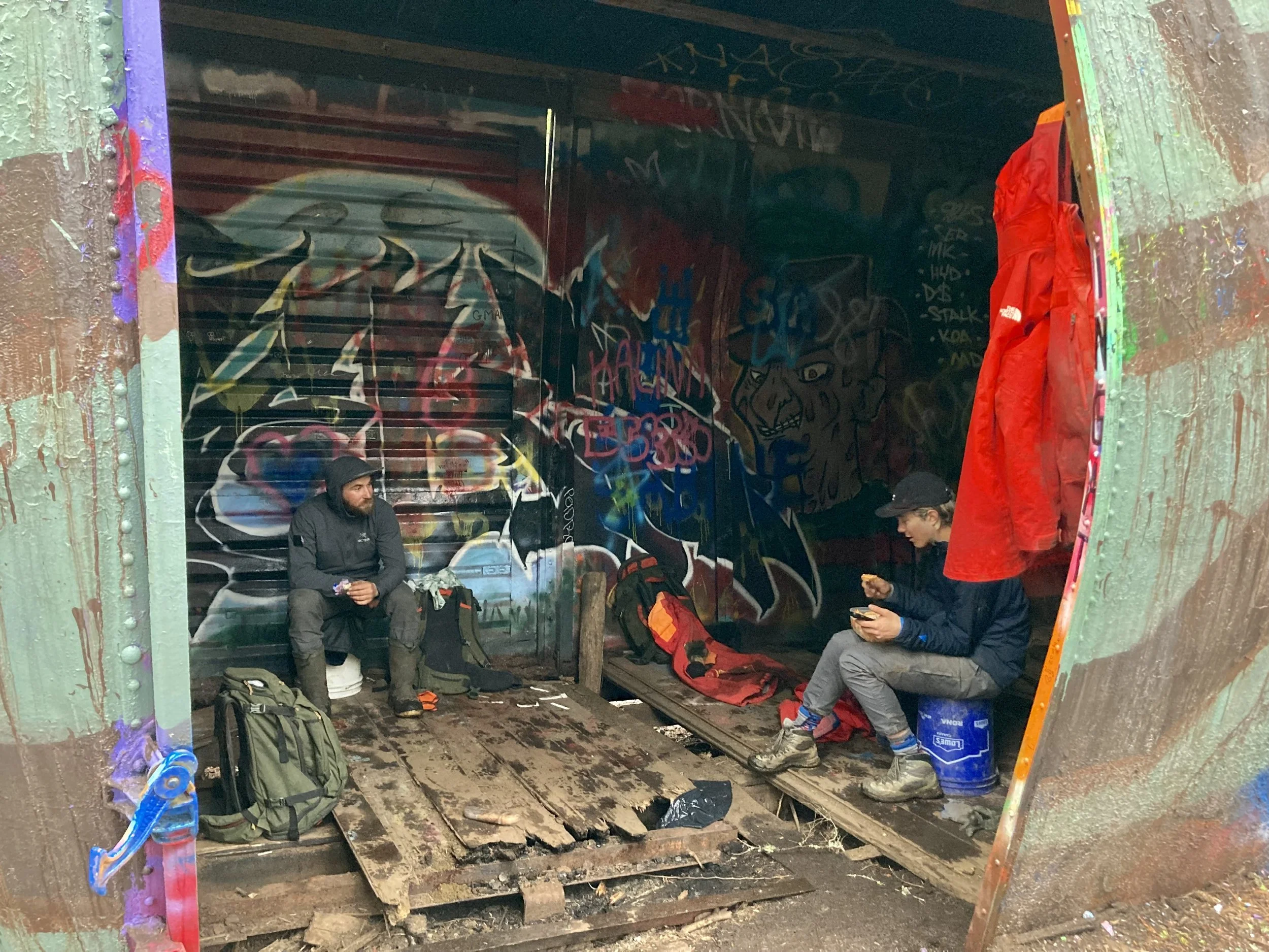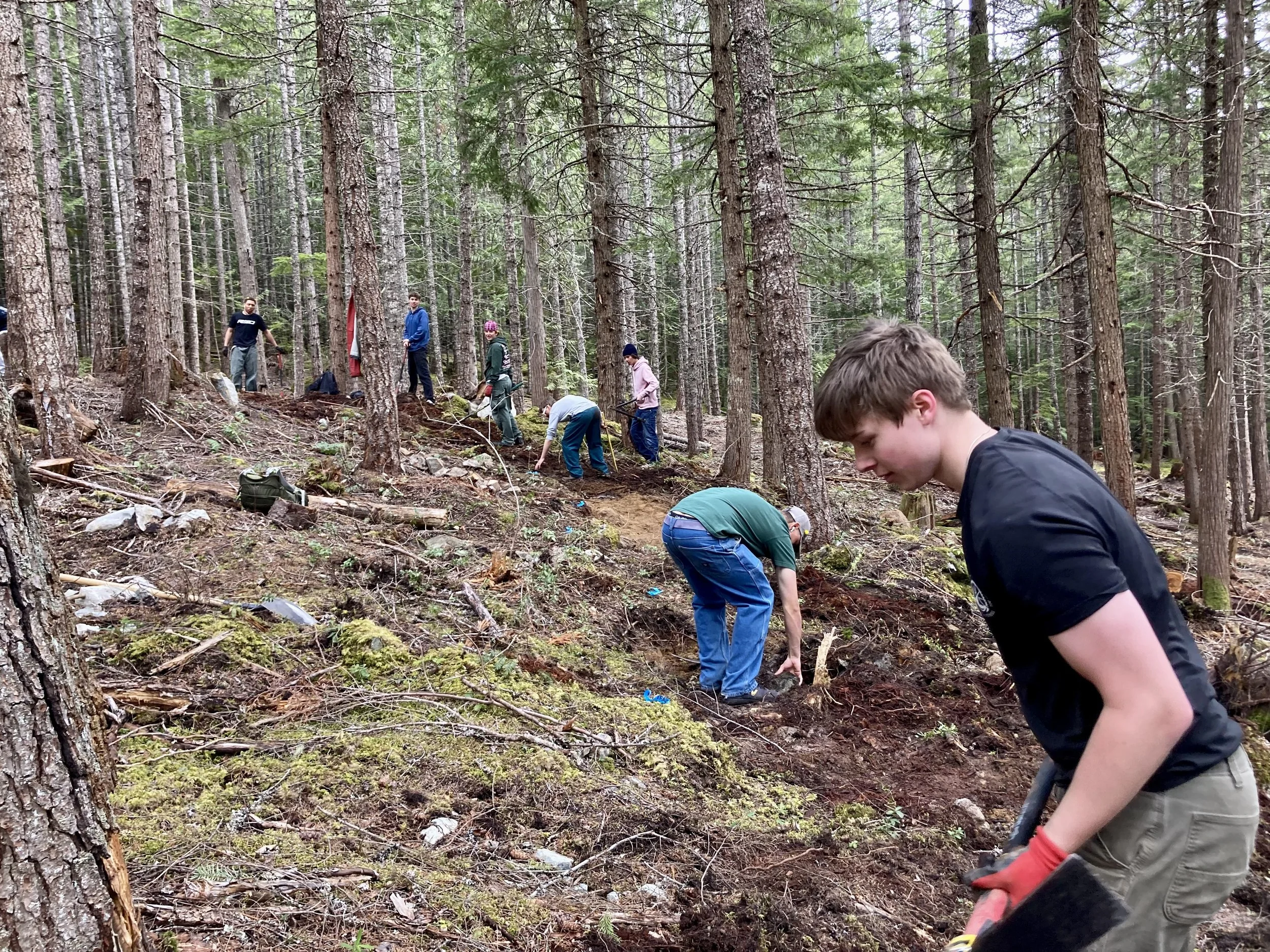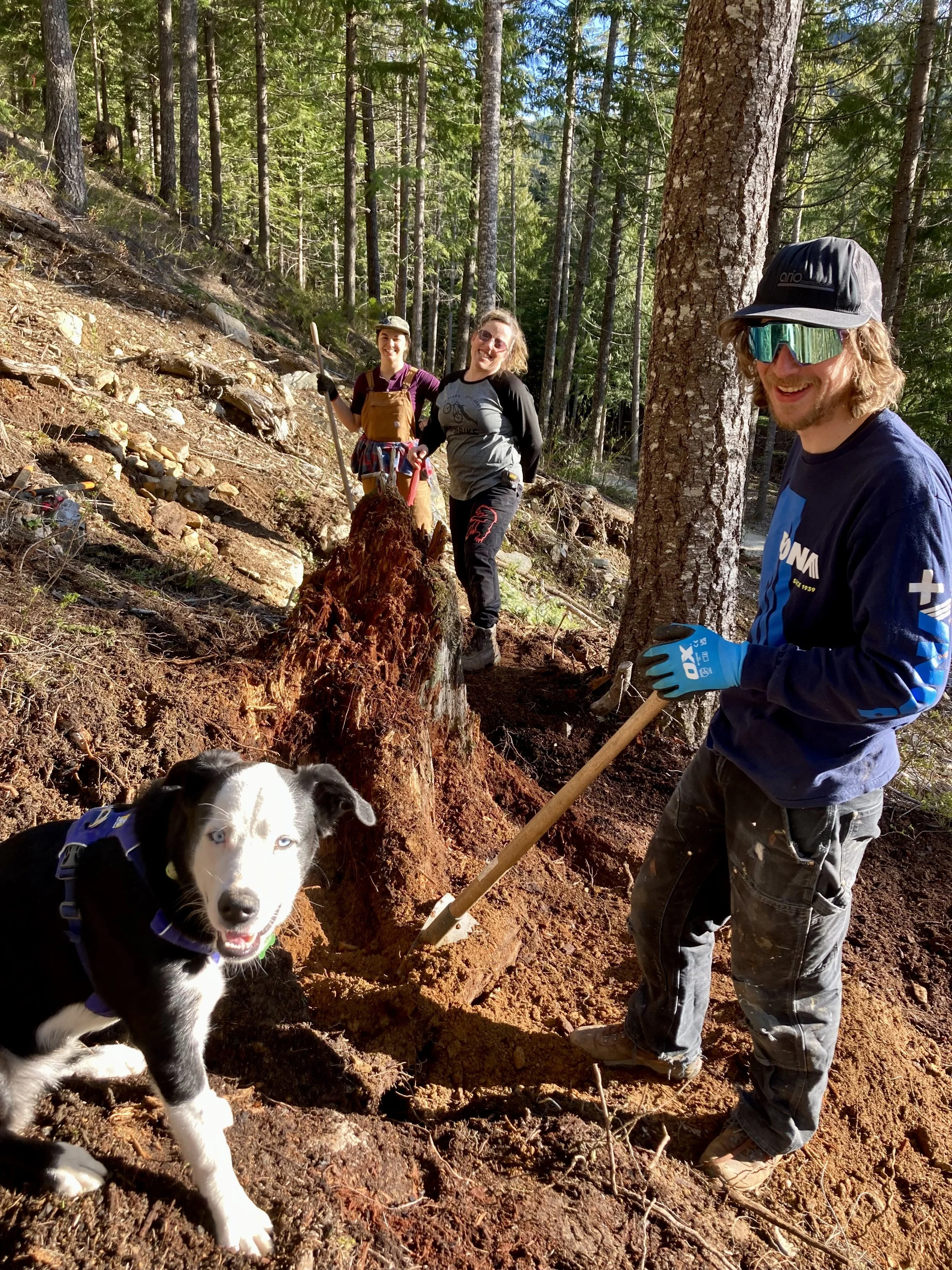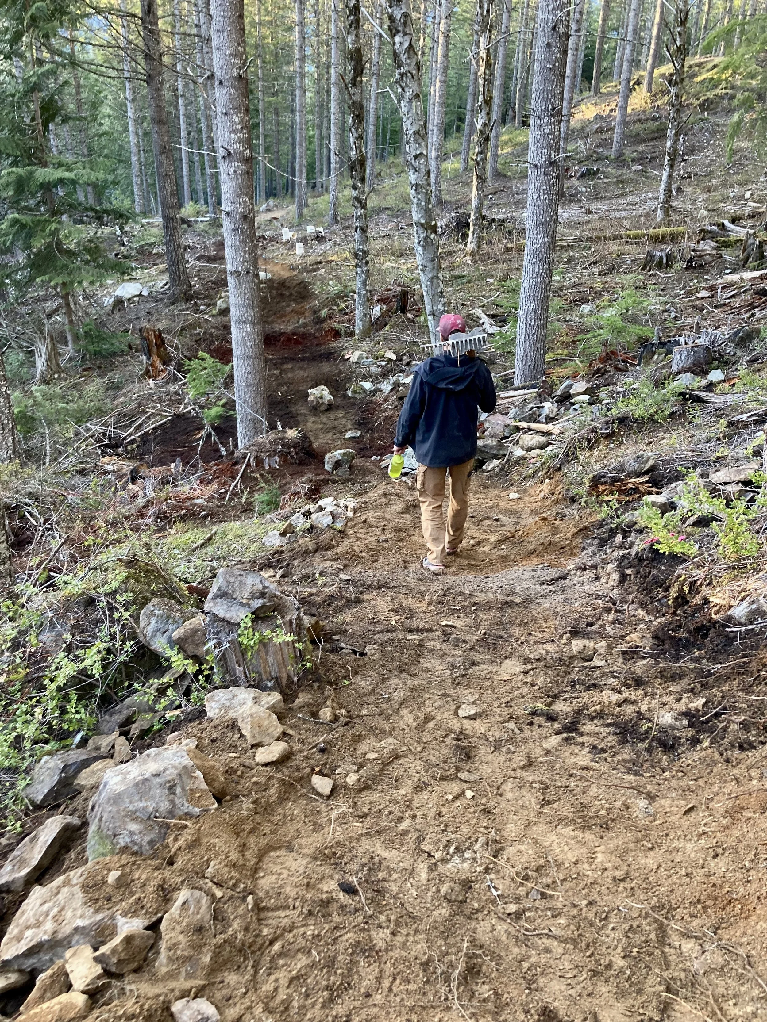 (I think) There’s an expression that Grade 12 students live by: Dress for the weather you want. This proved foolish in the face of chilling wind and hail for some of our t-shirt/shorts clad volunteer diggers… Once again, Mr. Kung’s Outdoor Leadership Program students have joined the trail crew for some dirty “phys.ed”. This year’s classroom is Creamsicle Rainbow. One half of this trail was impacted by last summer’s fire thinning while the rest of it lies on private property (as do the bottoms of White Knuckles and Anal Intruder). An opportunity/need for network redesign presented itself, so we’re rebuilding Creamsicle as a 2-way trail that will stay out of the private land parcel and provide access/egress to the no-flow zone. This is a large project that will recruit WORCA volunteers on dig nights once we’ve completed the Flashback trail… Speaking of which, more progress was made through increasingly rocky terrain last week. Thanks to OG Flashback visionaries Todd and Seb for joining the dig crew! Big berms coming soon! Sign up here to join us this Tuesday …Remember to dress for the weather (and mosquitoes).