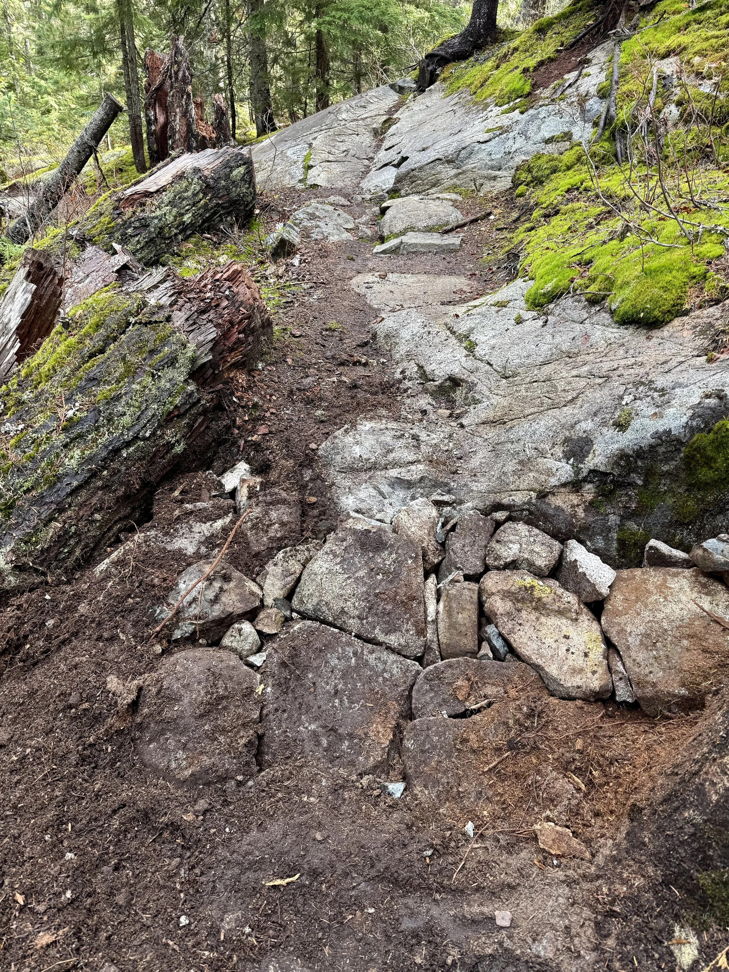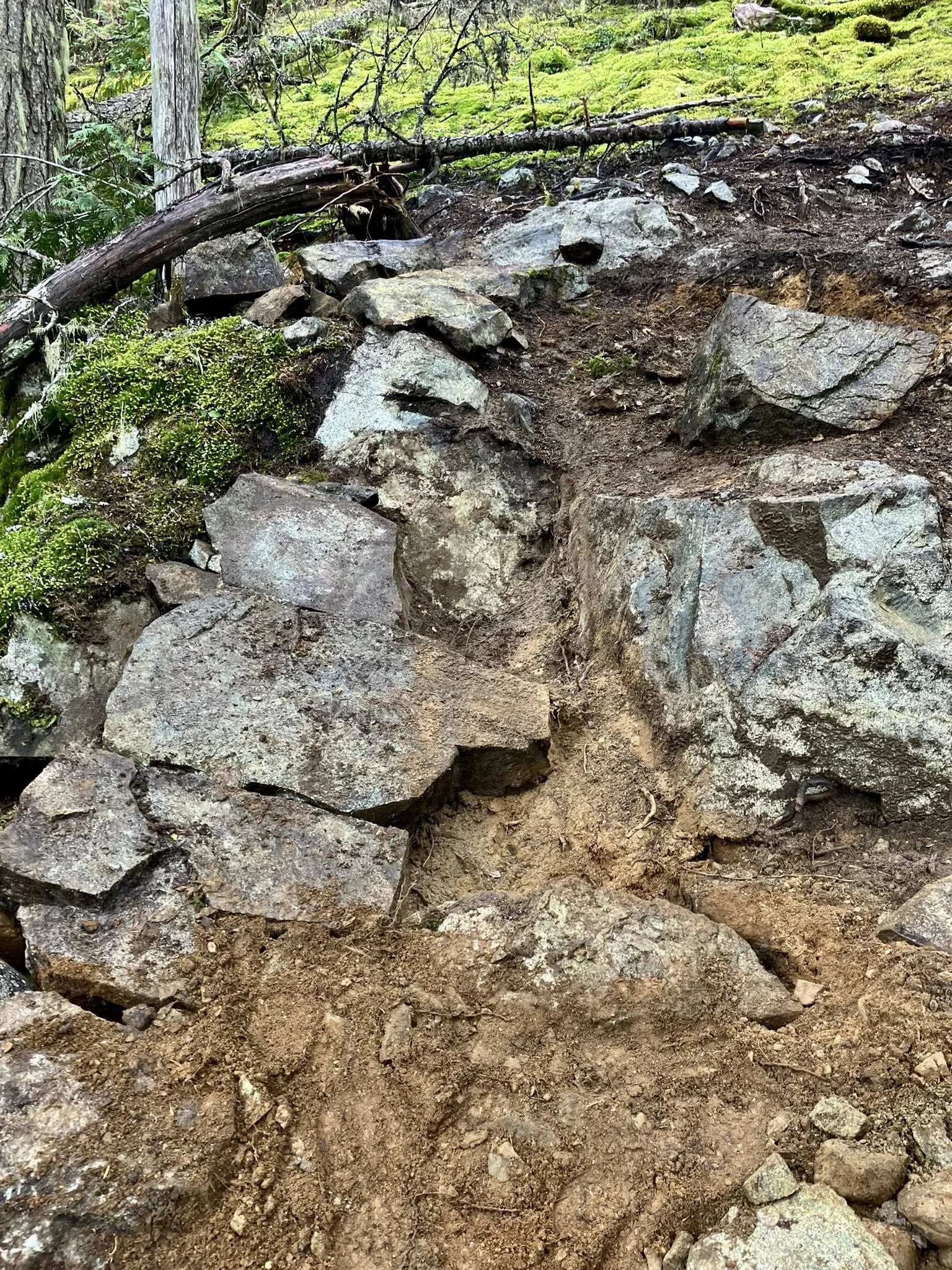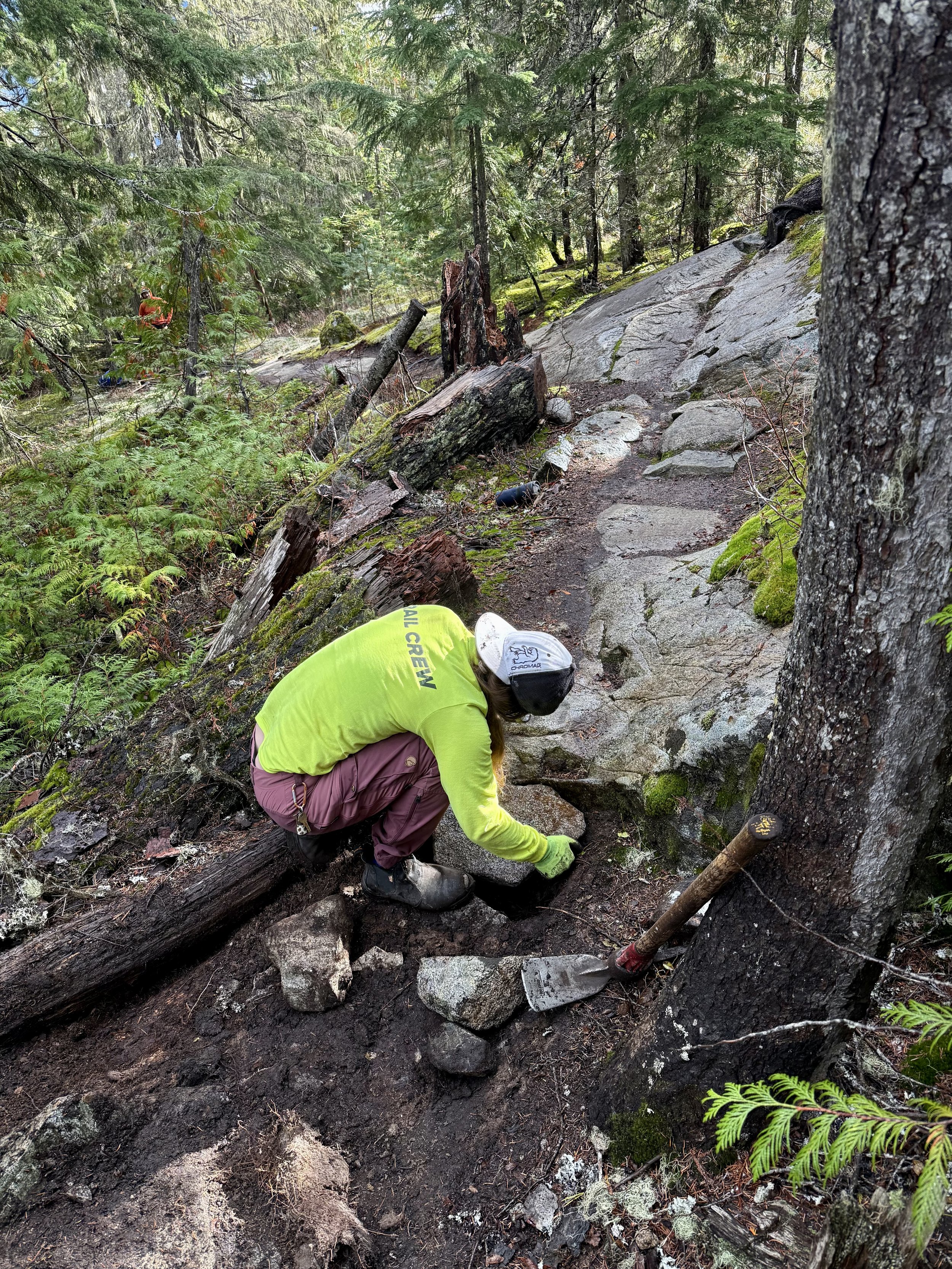 After a week full of volunteer events and smaller projects on the lower westside, the crew travelled back to the tools we stashed near the top of Yummy Numby. It feels like a month has passed since we were last here! The mature forest surrounding Comfortably Numb features a dense root infested organic layer which gives the trail’s tread a split personality: When conditions are dry, the trail bed is firm and grippy and awesome. When conditions are damp, the “just ridden in” tread behaves like a sponge, holding water, creating a muddy, slippery slog. We were waiting for the latter to continue with our repairs to this iconic 25 year old trail. As fungus sprung up through the moss, the trail revealed its wetter spots. We closed out the week stashing the tools near the top of Bring On The Weekend (BOTW)! BOTW has quickly become a must ride trail for locals and tourists alike and has been the main reason for increased user numbers on C-Numb in recent years. We’ve ridden through BOTW with its caretakers to discuss various repairs and our plan for the coming weeks will be “to take some of the edge off”. And, perhaps take some of the mushrooms out as well… Speaking of Mushrooms: Get your tickets to the Whistler Naturalist’s Fungus Among Us festival before they sell out!
