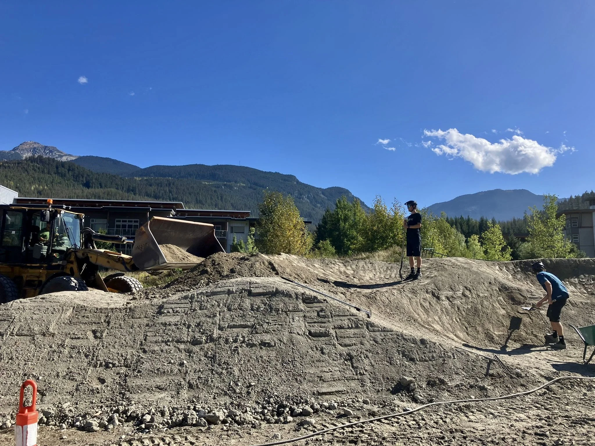 The RMOW trail crew has been morphing the Baylie Park BMX track into a jump park. When they reached out to WORCA for help, I saw it as an opportunity for the crew to learn and experience a new and fun trail building niche. Bike park and dirt jump aficionados are familiar with the iconic Square flat shovel. They’re used to move dirt (from a loose pile) and SLAP it down for a firm smooth finish. The WORCA trail crew only have Spade shovels in our arsenal. These are curved and pointed. These are more appropriate for digging down through rooty and rock filled soil which is more typical in the forest. We helped with sifting, raking, shaping and slapping before getting to the real fun: testing! Followed by more shaping and slapping and testing again. This week’s heavy rain has slowed the finish of the initial build but stay tuned for opening of this new facility later this month. I would like to thank the Whistler Rotary Club and the RMOW for their commitment to re-invigorating this part of Baylie Park! In other RMOW project news… Lower Beaver Pass and Whip Me Snip Me are open following wildfire risk thinning. Also, the new Al Grey memorial bridge over Wedge creek (Comfortably-Numb) is nearing completion. Please stay out of the area until all work on that site is complete. Remember to check Trailforks before your ride!