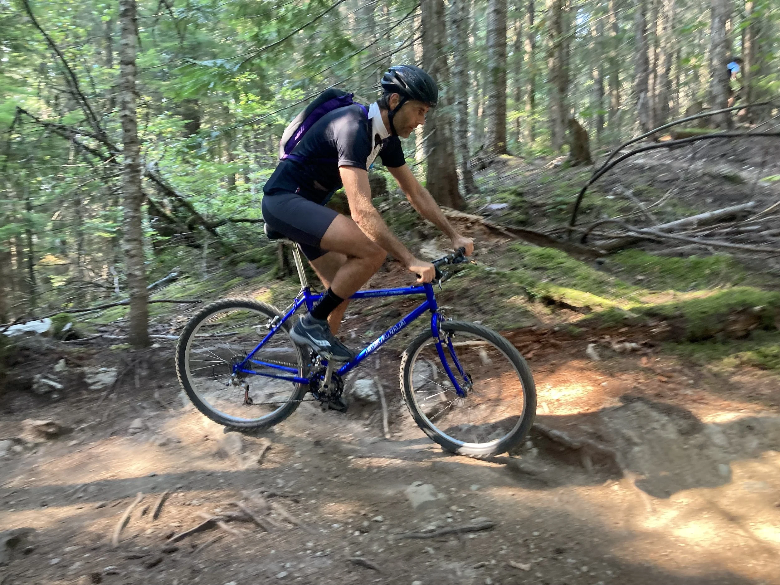 Our goal for Danimal South was to minimize janky pedaling. We Started at the junction with THC/Rock Rabbit where the holes between fat roots were sucking riders’ momentum (or scaring them into the pristine moss). The Michals and I had a chat after pulling the huge stump by Moose Knuckles: “The line looks way better now,... How would you feel about bridging the hole-riddled root mess instead of armoring?” “Oh yeah! Let’s do that!” It took less than 30 seconds to locate a recently fallen cedar that would provide the frame and we had enough decking ready to go at our stash. Further down, we widened some sections to give riders space to lean, built rollers to pump and redesigned the trail to eliminate an awkward switchback. There are also some jumps in there for riders who notice that kind of thing! Rob and I pulled out a monster rock that was hindering a turn and relocated it to the steep straightaway: we built a squiggle/grade reversal. Good luck to all the racers!