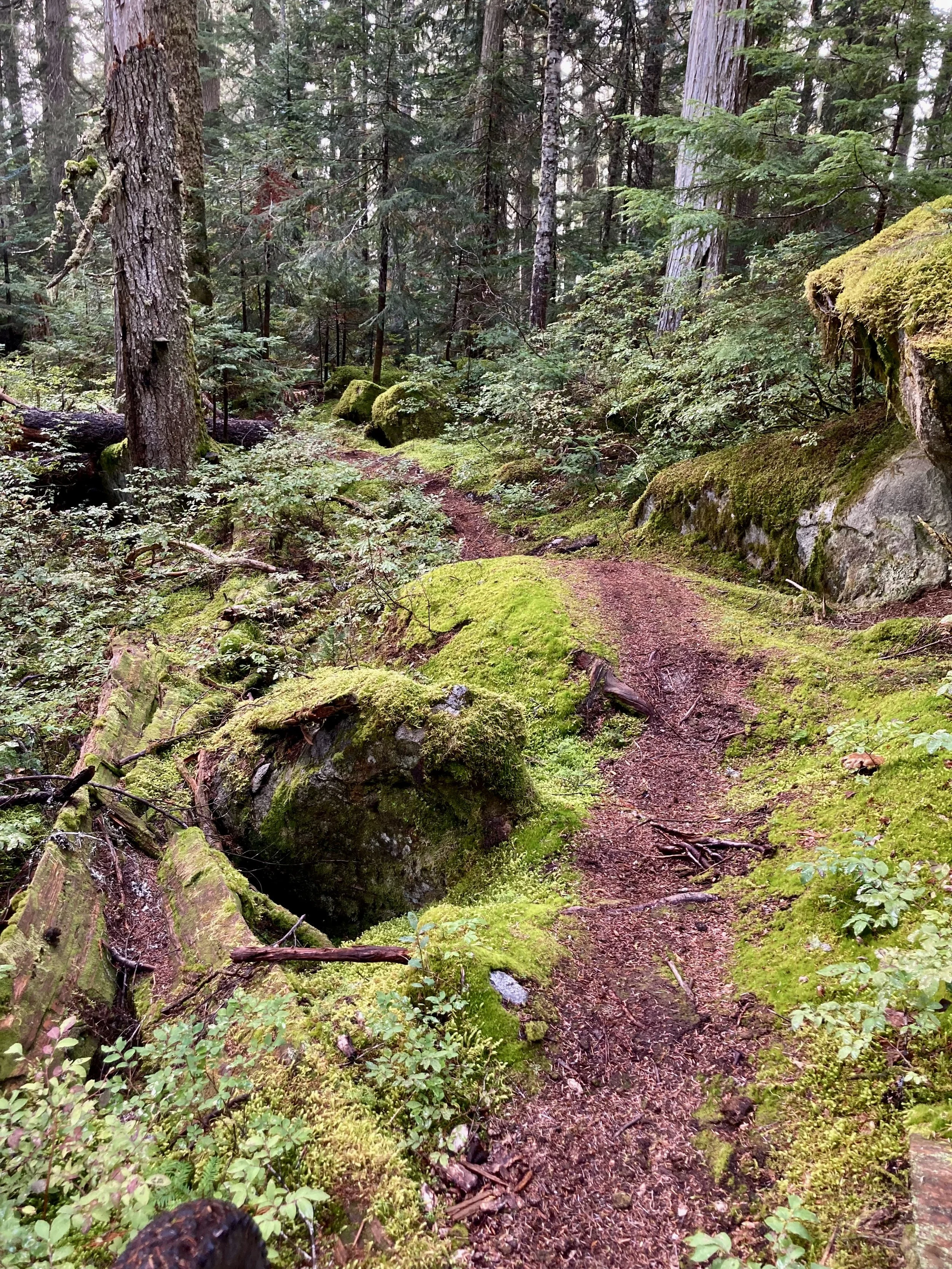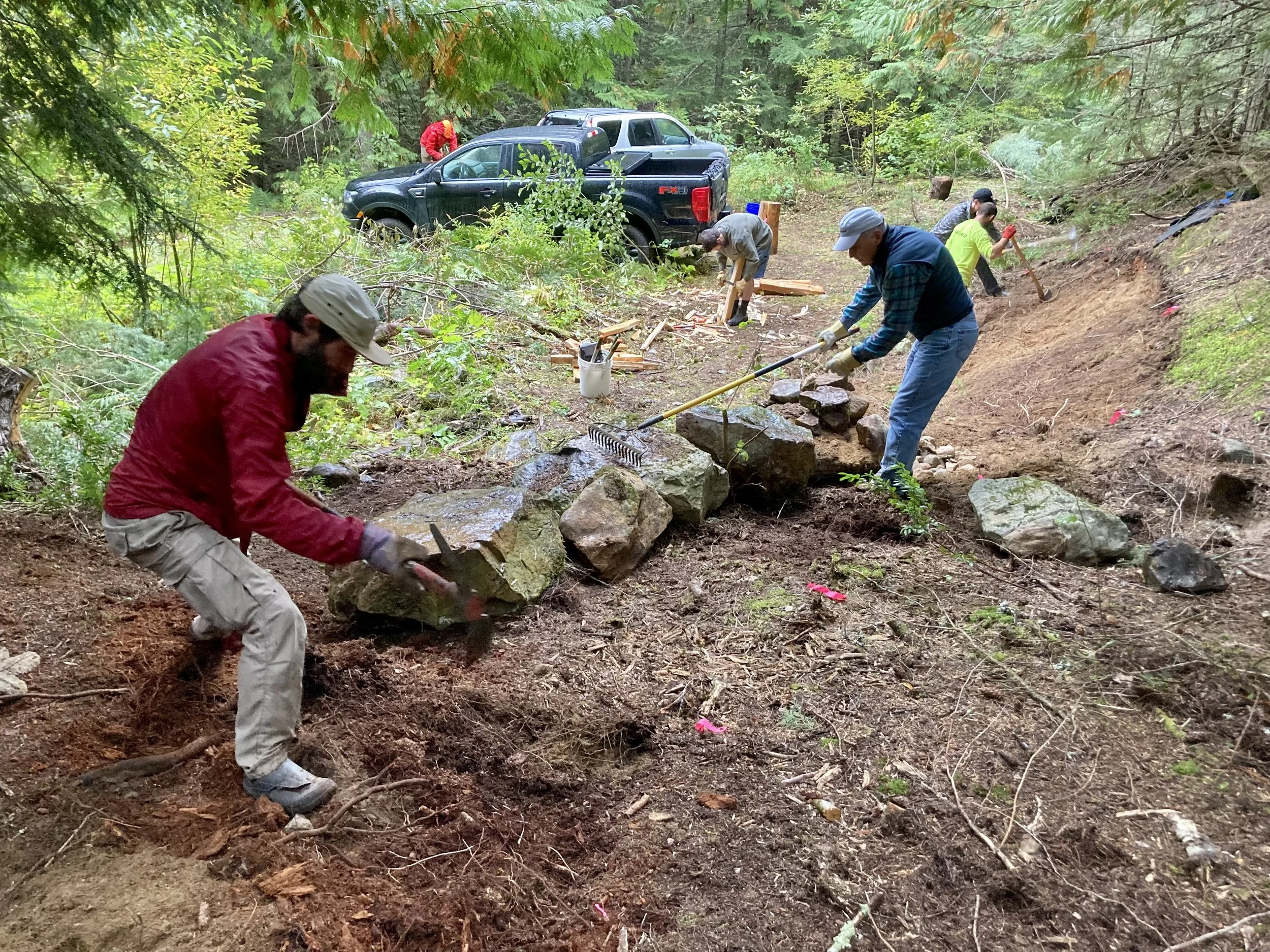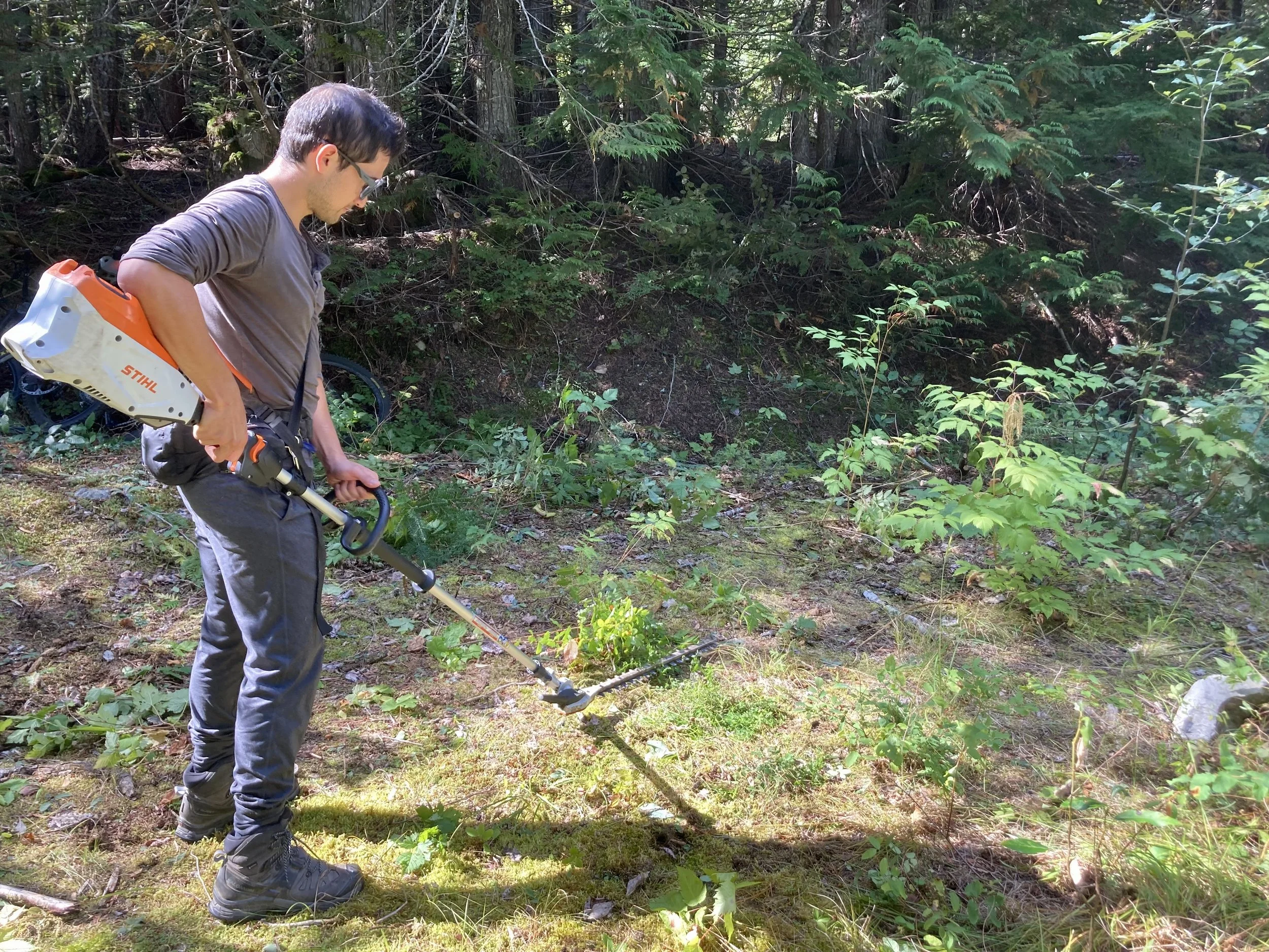 I had been planning this mission for August (when the huckleberries ripen) but the Danimals needed more love than I had anticipated. September up there isn’t bad though: there are less mosquitoes and the mushrooms are popping! We’re bridging seasonal wet spots and armoring roots where we see evidence of tire/pedal damage. It’s important to do everything we can to protect these majestic old growth trees. As Tall Michal cut into a log, the distinctive smell brought back memories of epic battles trying to produce anything resembling a decent piece of decking when we last built bridges in this area. This was Yellow Cedar. It dominates the jane lakes area and tends to burl, twist and curve as it grows; more so than its famous cousin (and the trail crew’s preferred wood supply) Western Red Cedar. “Let’s try this log and see… we can bring the (really) big saw tomorrow if splitting this doesn’t work” I was skeptical. Lo and behold: the first attempt made the most perfect board of the year! What a relief. So far, we’ve built 2 bridges with plans for a few more to add before the snow flies. I can’t believe I just typed that!