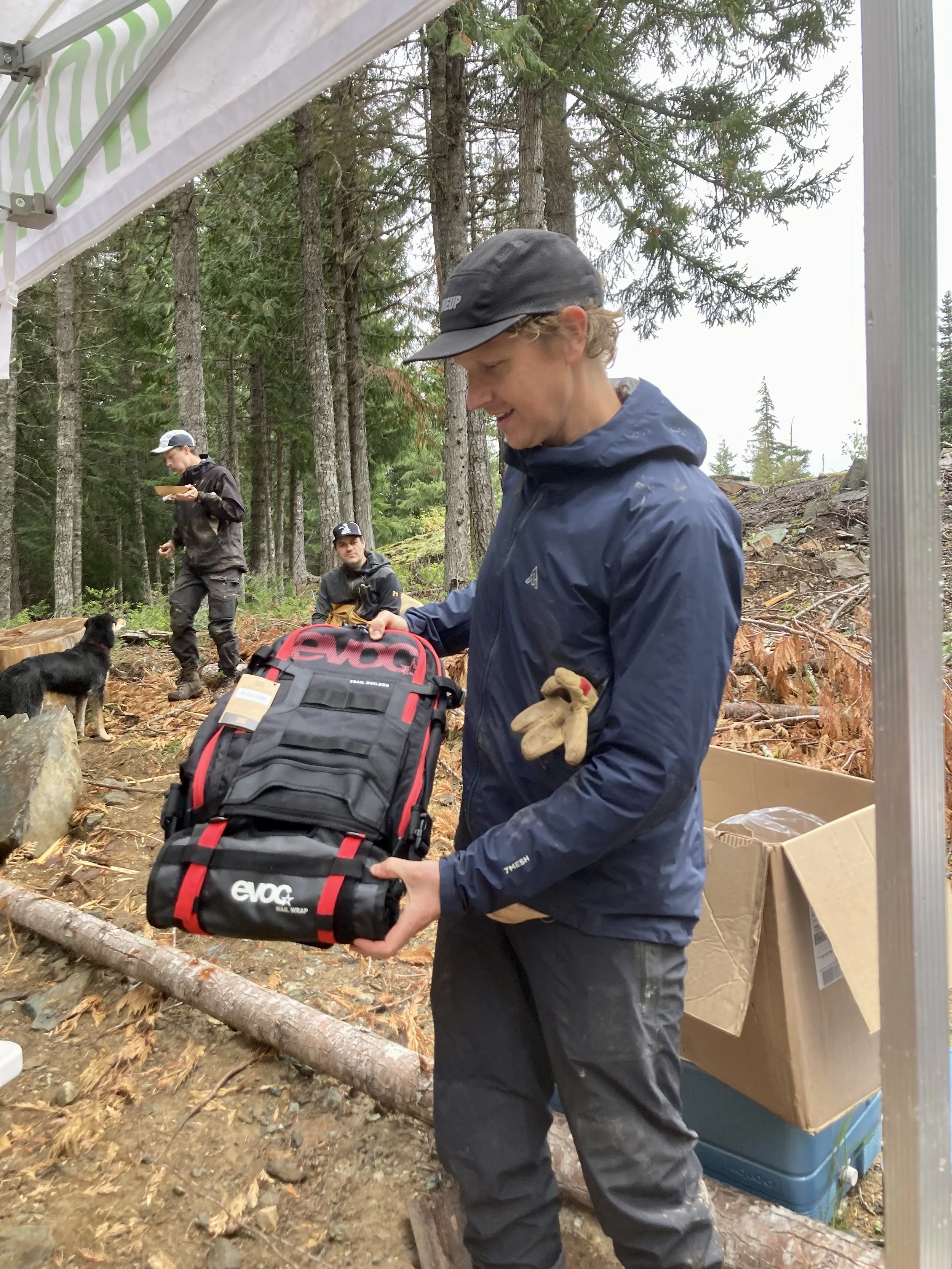 I recently had the privilege of teaching another session of the Whistler Adventure School Sustainable Trail Building program. I had been saving a short “missing connection” of the Dessert Platter for such an opportunity. You probably know the one: where you get shot down the FSR past 99’er to beaver pond. Together, we studied trail rating factors, effective terrain selection, using a clinometer, brushcutter, flagging for construction and all of the techniques to build a trail from scratch. We got the project off to a great start including pulling the stumps and building a bridge. The project was bigger than a quaint 4 student class could handle so we enlisted more help: I lined up the Sunday Morning volunteer diggers to get more meters done. Spicy Sports and Arbutus Routes sponsored the event and brought some of their team members to help remove the deepest red rot we’ve seen in a while. After refilling the trench (with rocks) and connecting the “dots” left by my students, we retired to a scenic spot for food and fizzy drinks. Matt from Arbutus had a surprise in store for the trail crew: he had been awarded a special EVOC package for our trail day featuring deluxe buckets, tools and a trail builder’s pack for the crew. The perfect accessory to carry chainsaws farther than ever in comfort and style! We wasted no time putting it to good use the very next day, traveling to Jane lakes (read below). As for the fresh segment: It’s not quite done yet. I’m saving its last few projects for the pro crew, later this fall (in case we get snowed out from working at higher elevation).