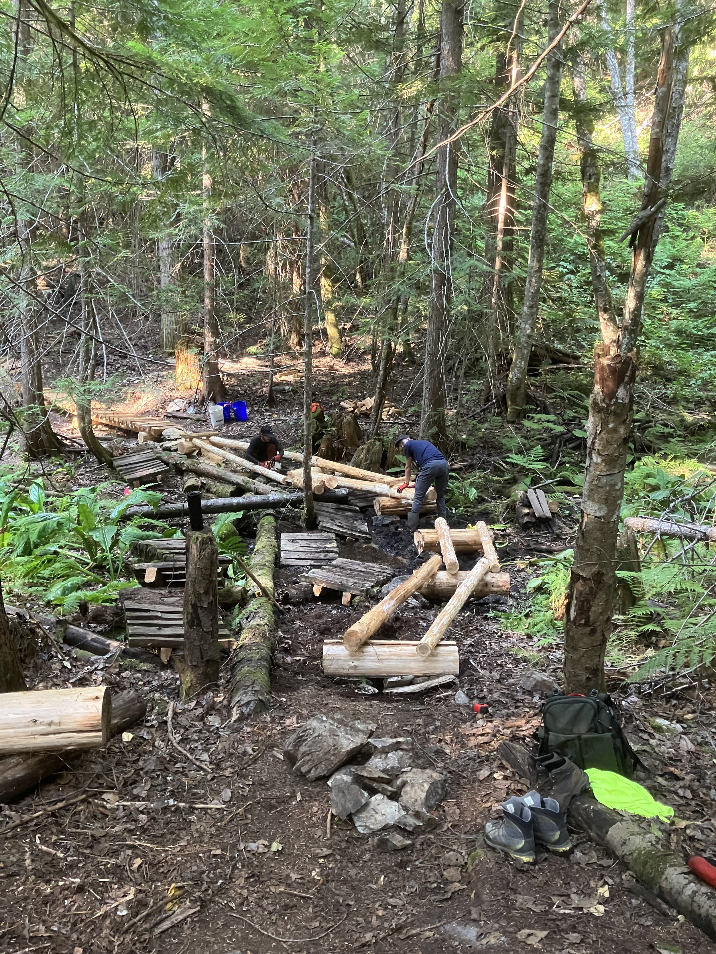 Later in the week, the carpentry action continued across Alta Lake Road as the crew tackled expired features in A River Runs Through It (North). We’ll be freshening up more cedar there next week in anticipation for the return of the Westside Wheelup on September 10!