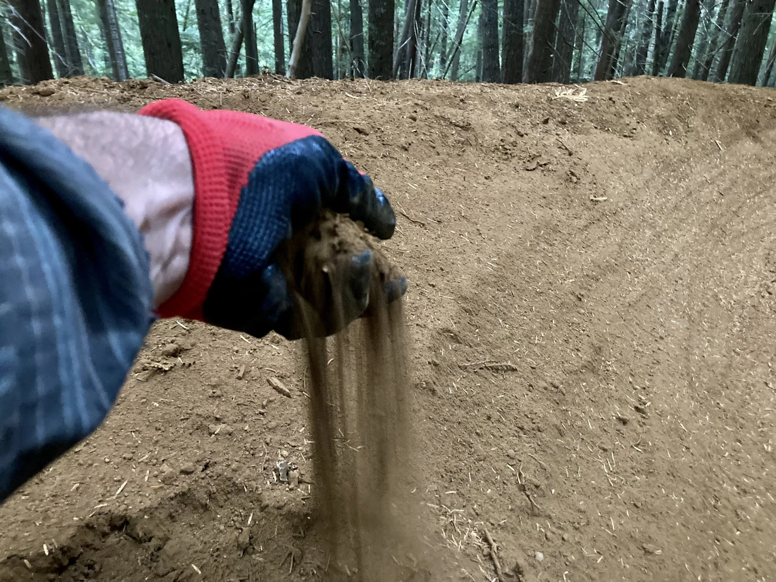 Another timely tradition was also in the calendar for this week: Honorary trail crew member (and heavy rock aficionado) Rob Mullen was back for another week. With anticipation for weekly volunteer parties, Rob and the crew took to Flashback 1 for some finishing work and to build the bridge which will ultimately link it to the rest of the descent. We’re ready for evening digs… when the weather cooperates! Meanwhile on Far Out 3, “Past WORCA President” Craig Mackenzie has been busy widening the trail to Adaptive-MTB blue standard. I joined him for a progress update and to coordinate where the trail crew can lend a hand. The end is in sight for the first phase of this exciting project!