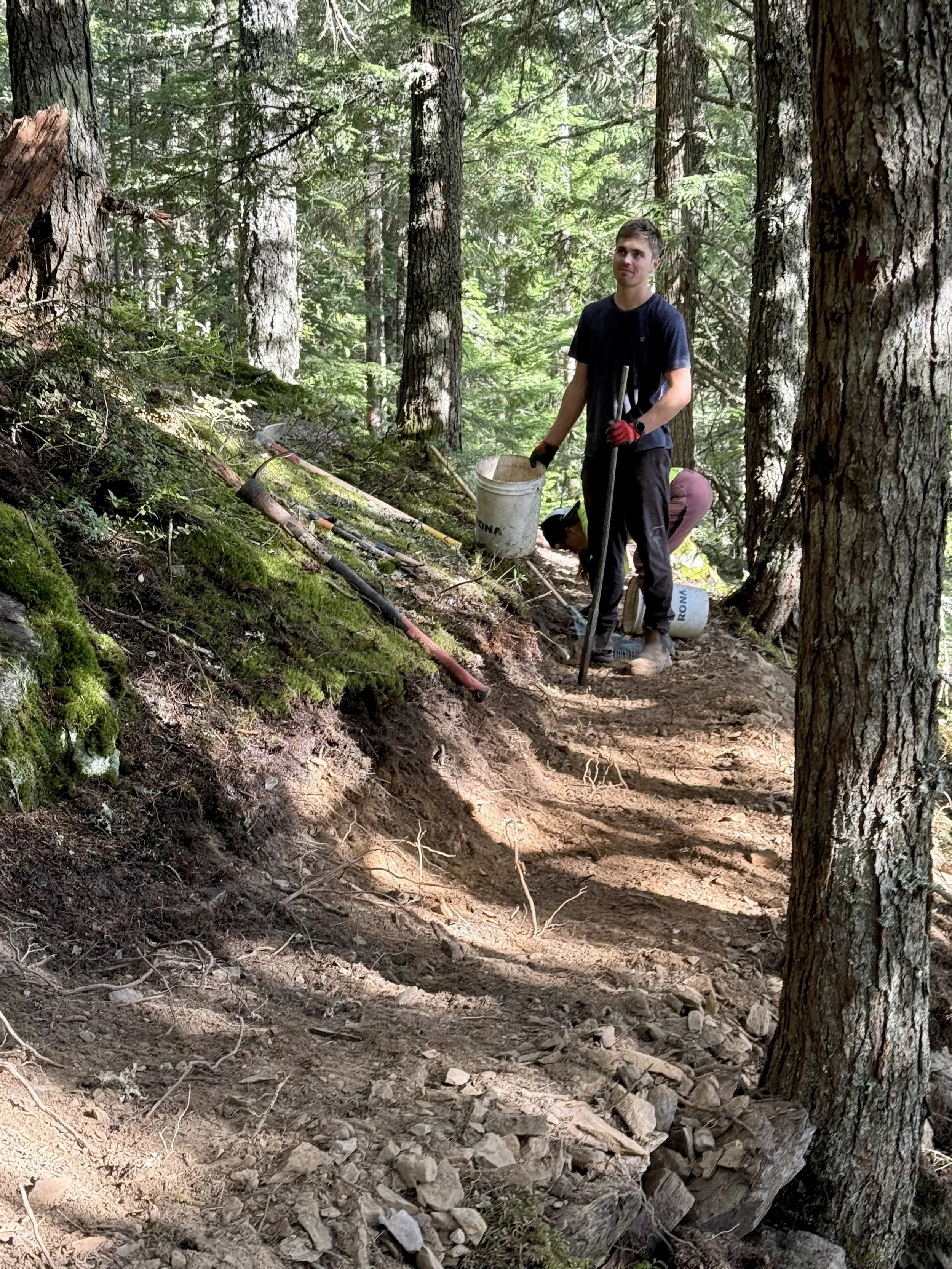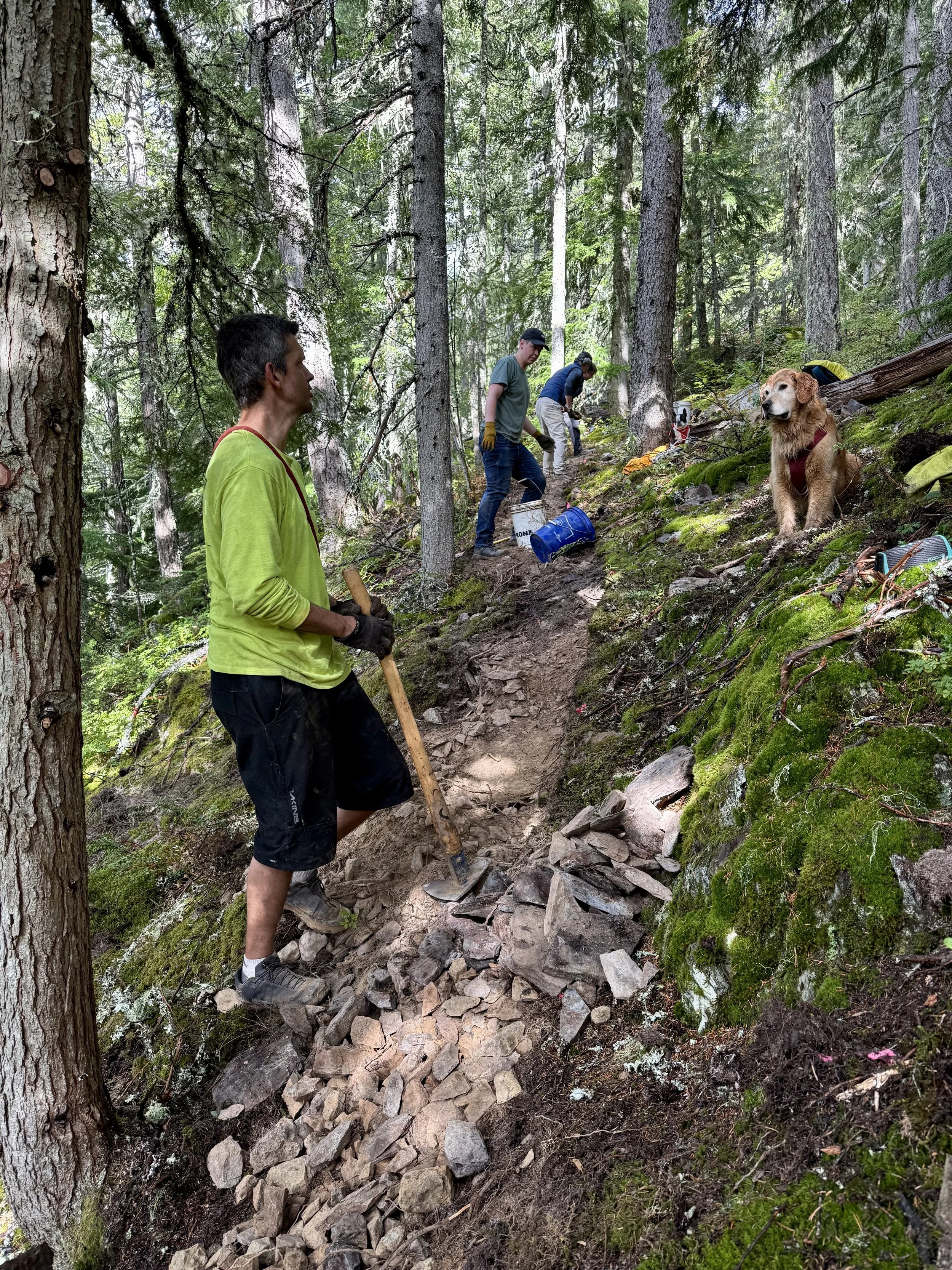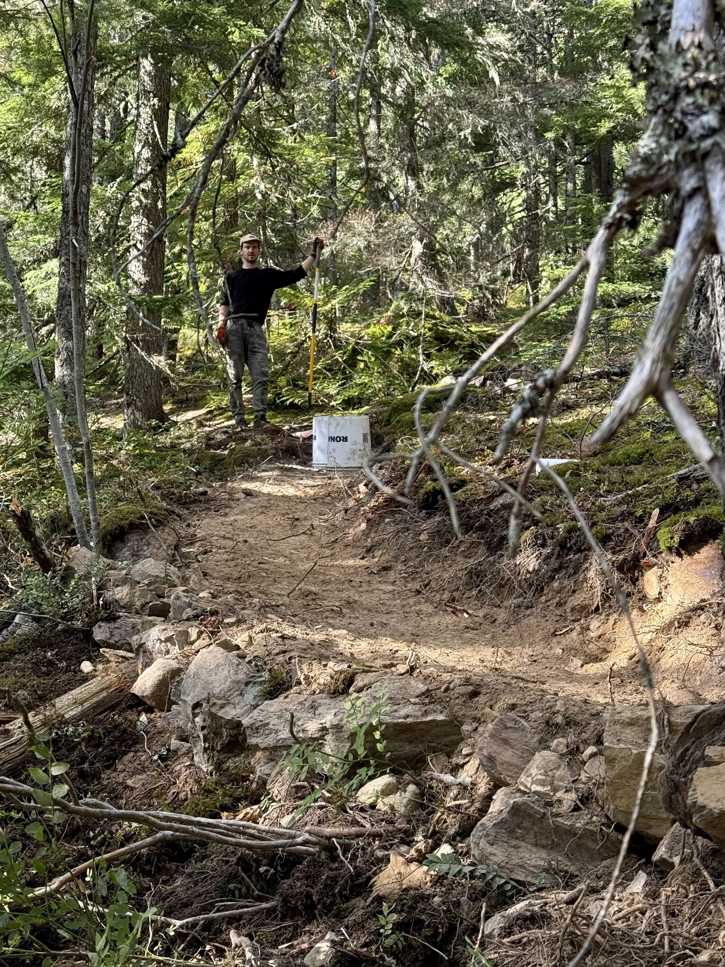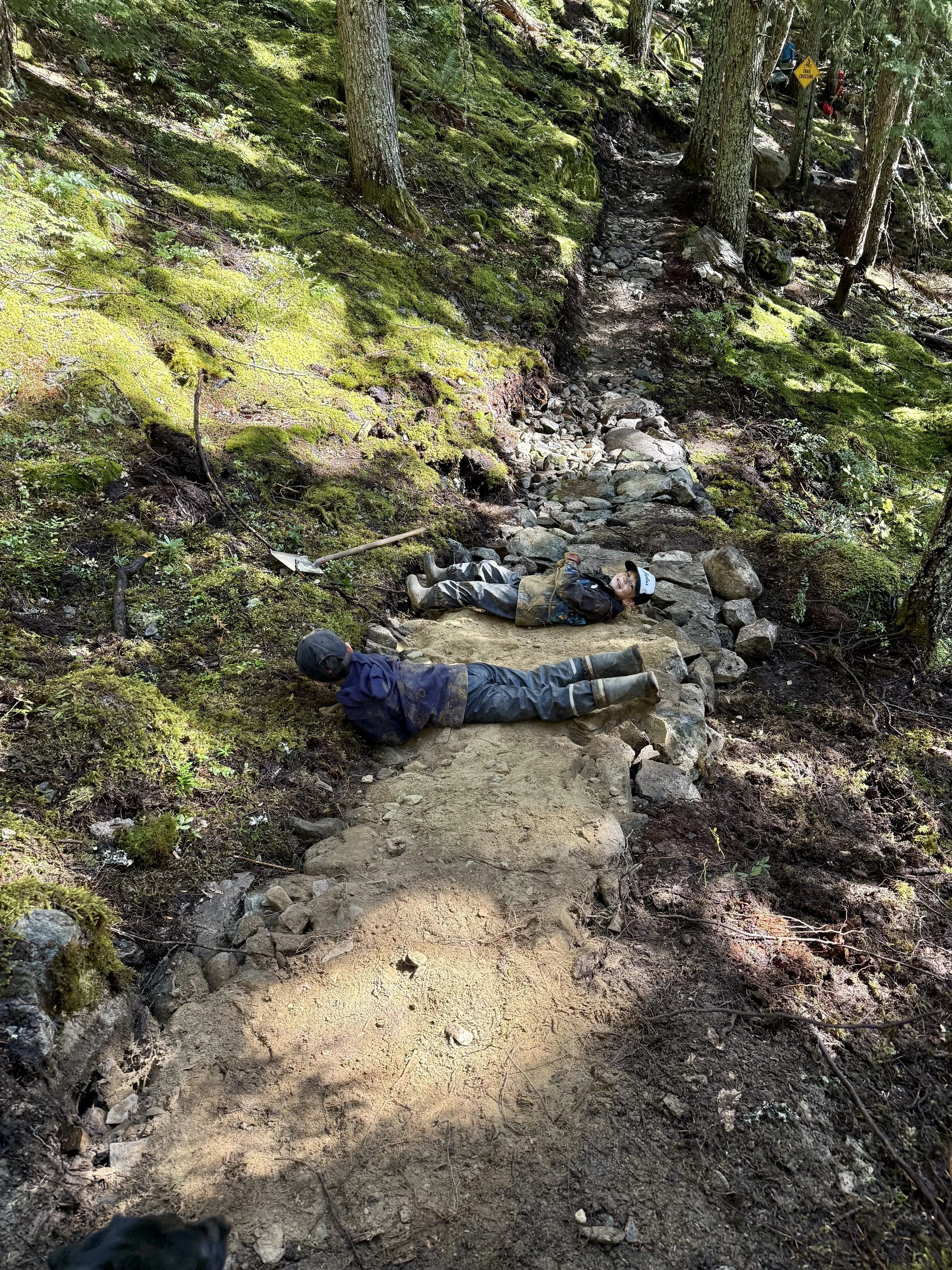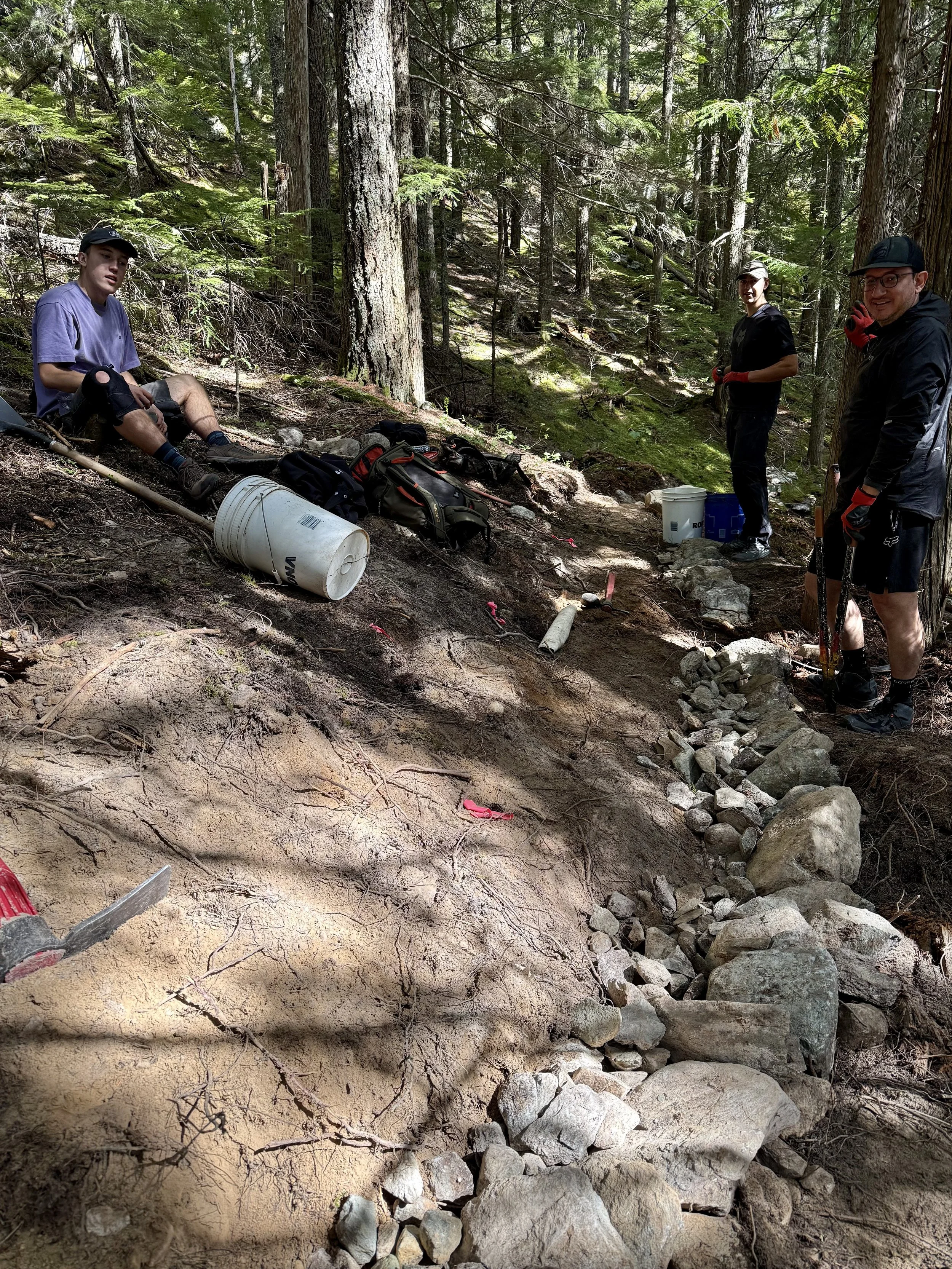 Volunteers completed an important segment of the Rock Rabbit thingy on Sunday Dig Morning…Separating Danimal South from the Rabbit Blue Line to eliminate a high speed intersection. It was fun to work through steeper, tighter terrain! We also made progress on the Blue Line. The overnight downpour made the dirt perfect for capping and packing. Jackson and Beckham were fully committed to steamrolling the fresh dirt! Serendipitously, the first customers through the new line were super volunteers Zach, Terry and Sam who literally showed up just as I took down the trail closed sign! This week's sponsor was Delish Cafe/Whistler Grocery and they fed the crew delicious sandwiches and we once again thank Coast Mountain Brewing for the fine selection of suds! Our next Dig Morning should end with a ribbon cutting… Chromag invites WORCA members to join us on Sunday Oct 5 for the final works to complete this project! Sign up here!