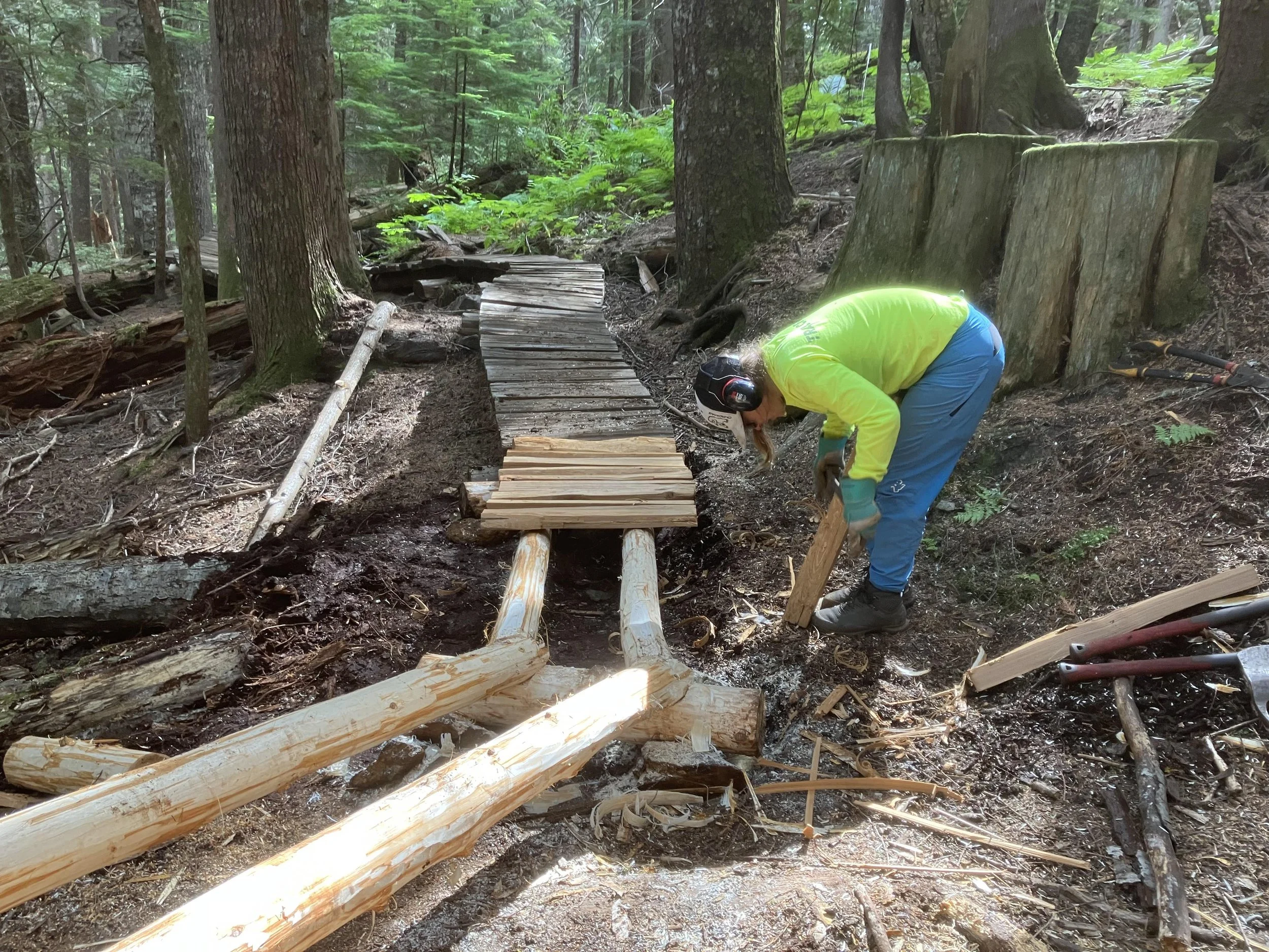 We spent this short work week completing more critical upgrades of wooden features in the north section of A River Runs Through It.