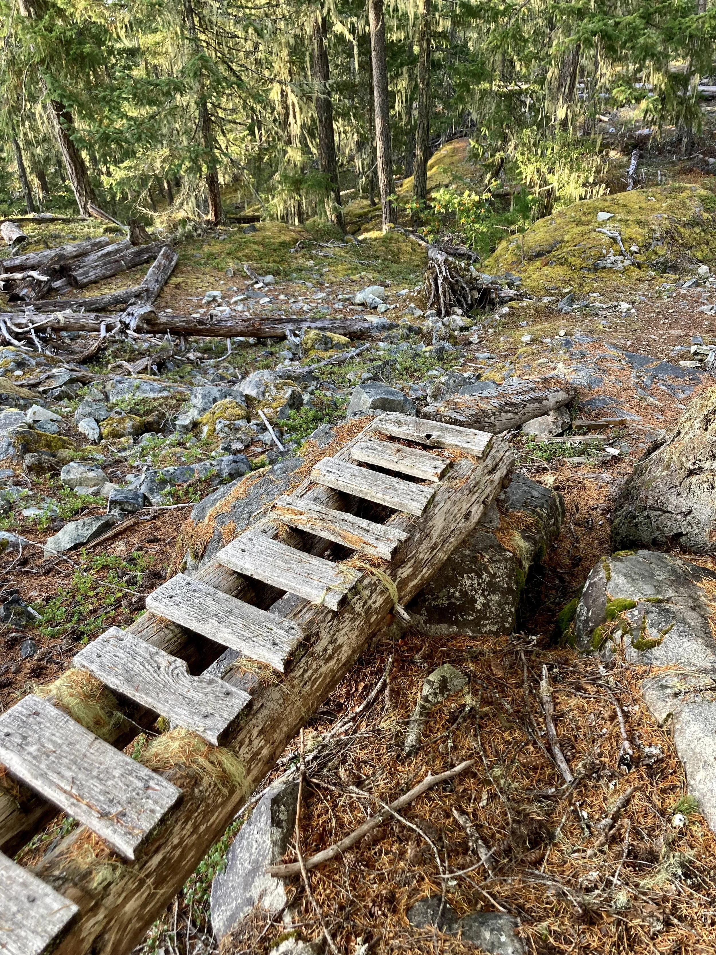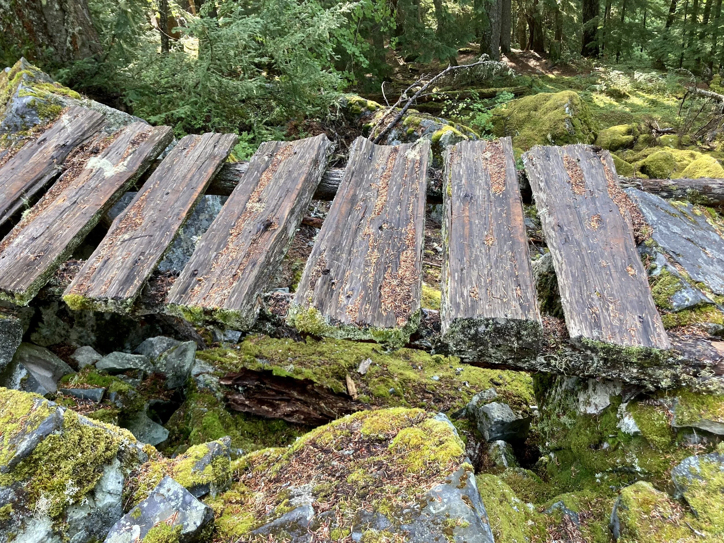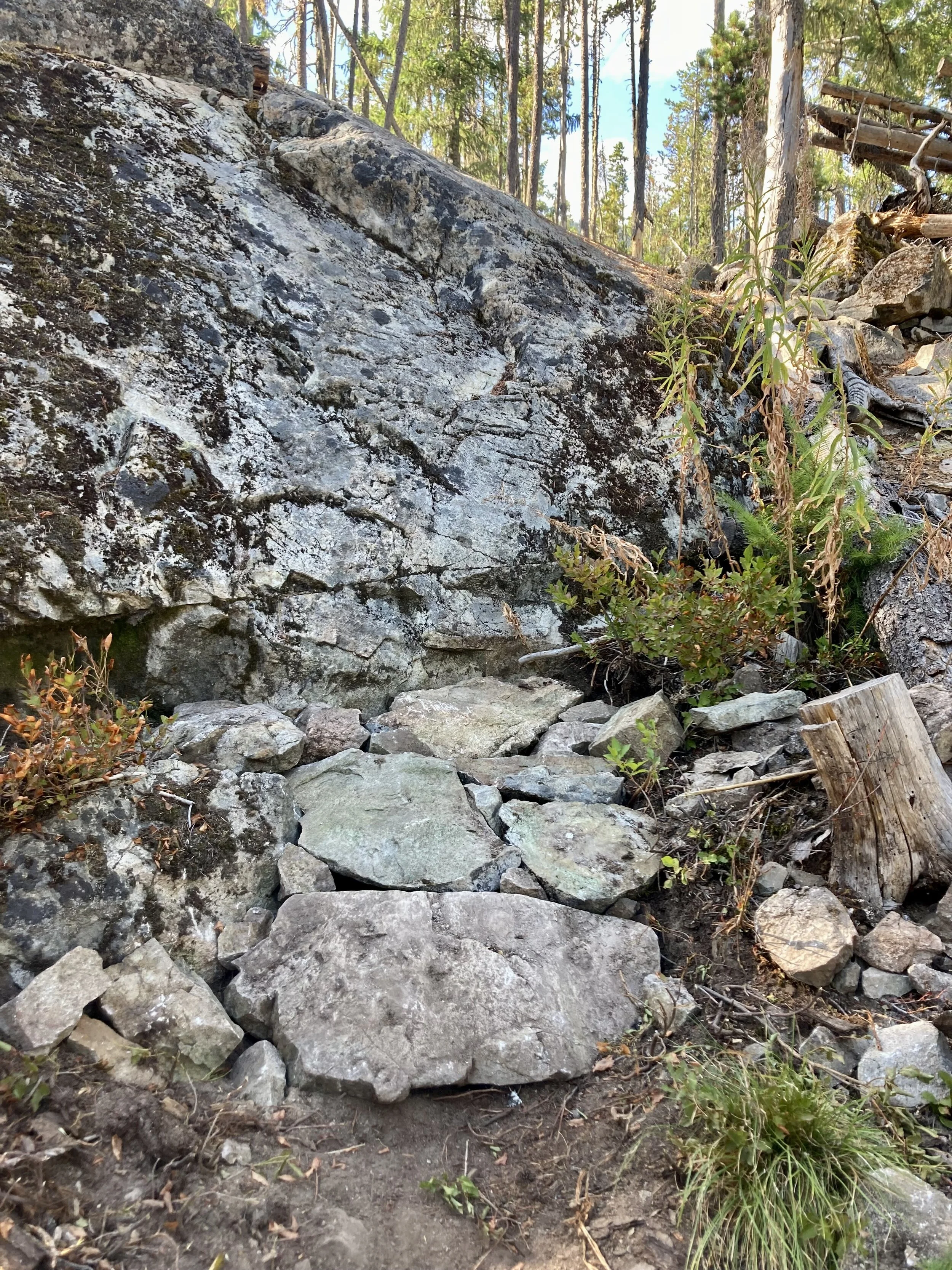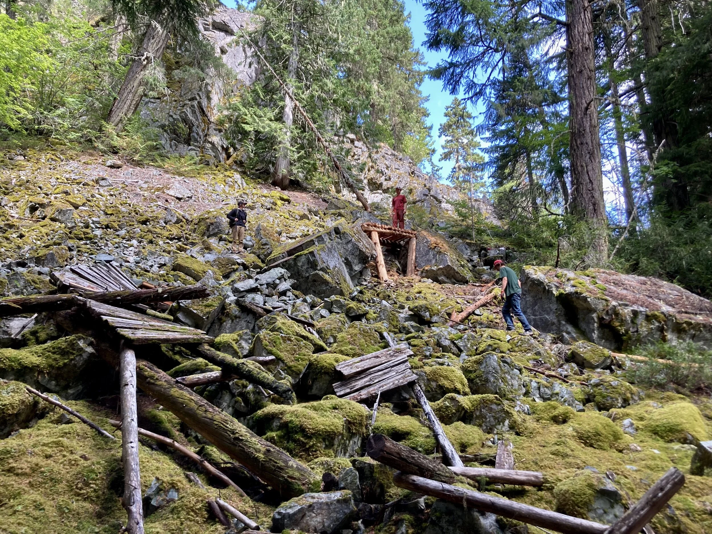 We got “lucky” finding some materials: infinity+1 rocks to choose from in the omnipresent boulder fields and some great Red Cedar deadfall for bridging. Finding dirt in this end of town is akin to winning the lottery… so we haven’t been “hiding” our rock work. You can find some of our repairs on Big Kahuna, Azrael, and Gargamel. We’ll be back for more in the coming weeks (Section 102, Shit Happens and Delineator).