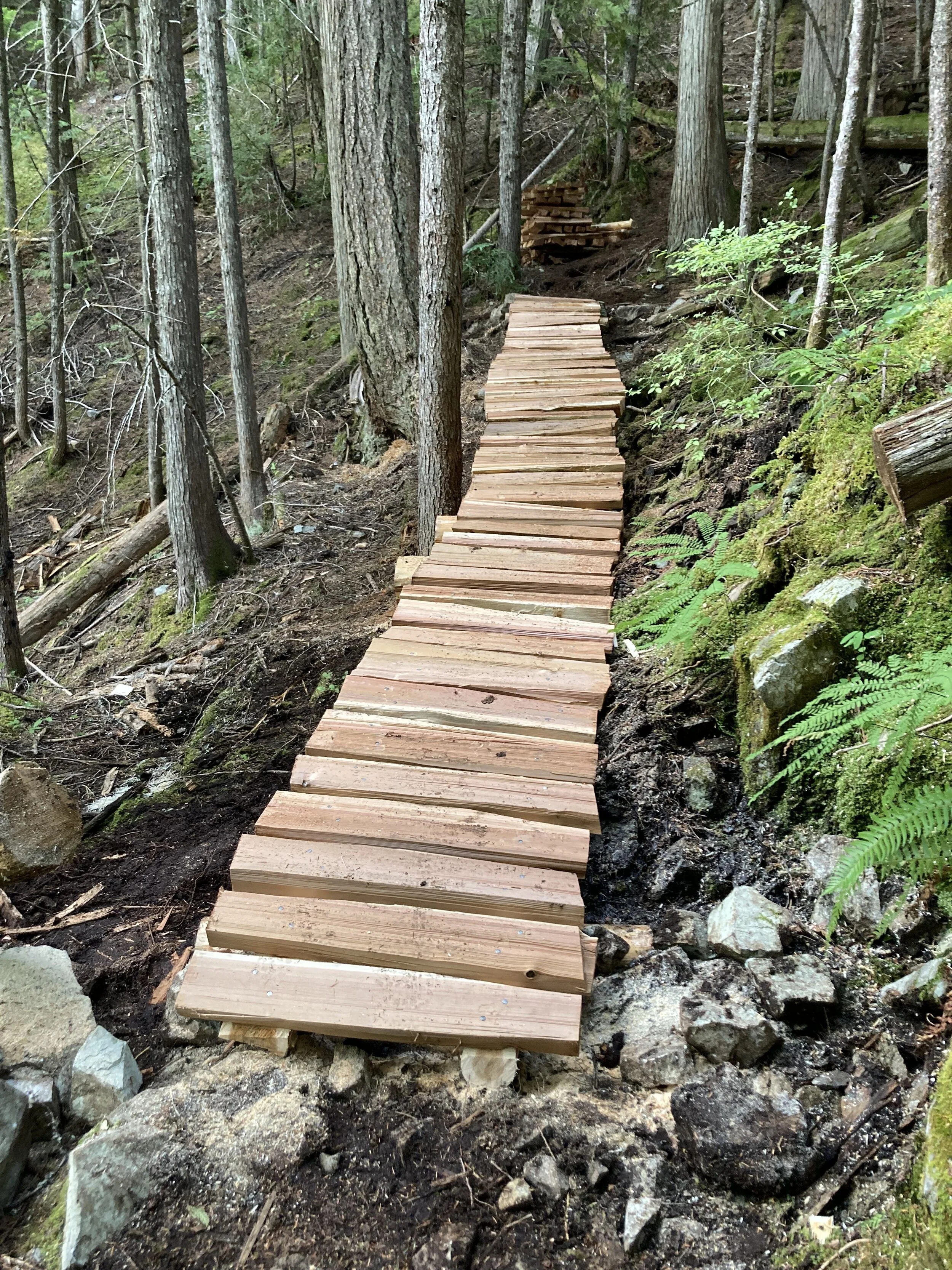 Back at work, the 30+ year old Disease section of trail had some imminently failing edge support beams that all needed upgrading. I fell right through one while inspecting it. Sketchy!