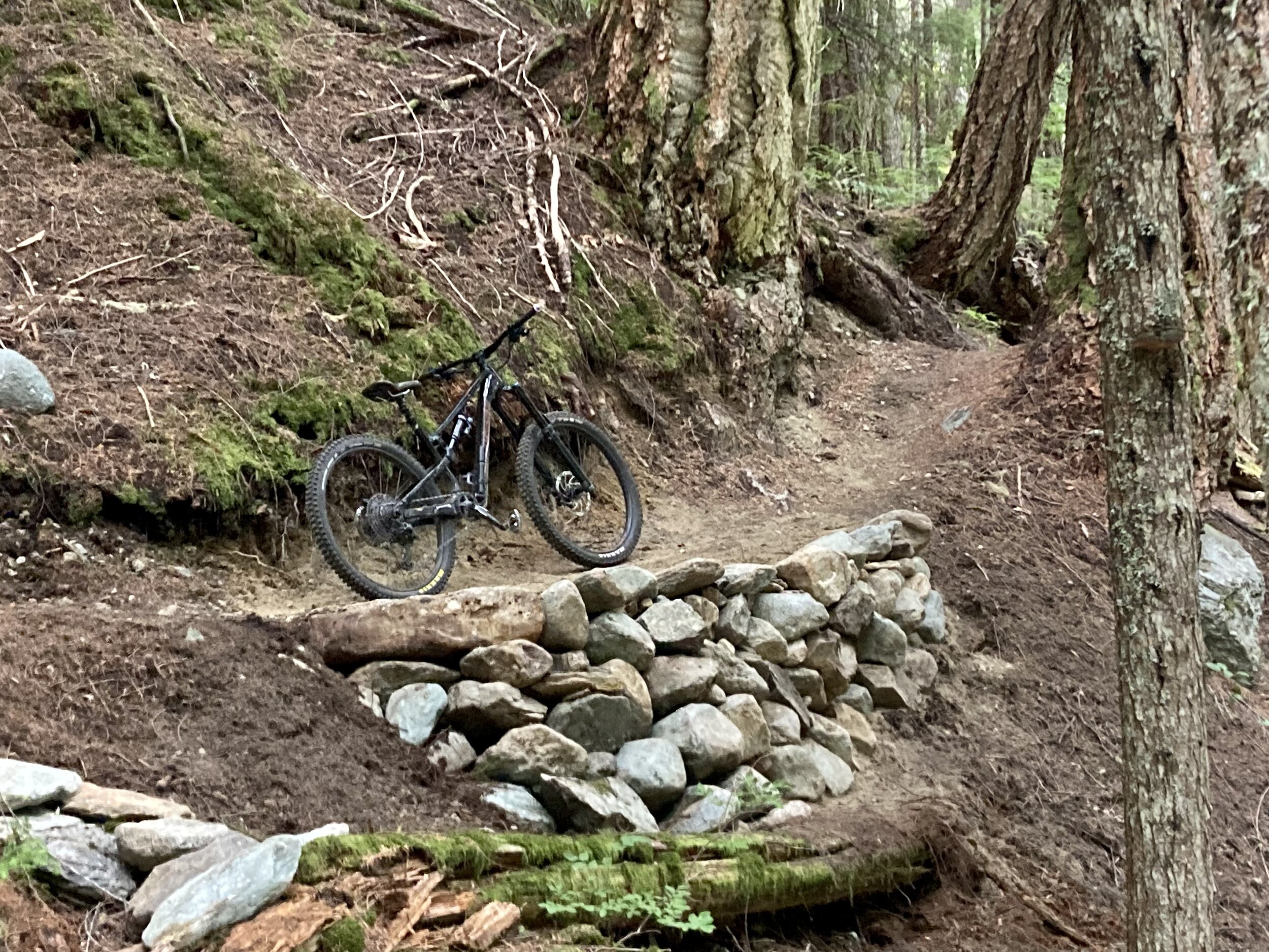 The steep upper section was originally a hike-a-bike part of Industrial Disease. We had to do some network re-arranging (and trail renaming) when Sproatt creek had a debris flow event that destroyed the original Industrial Disease creek crossing. We did not rebuild the crossing and rather than have two different unconnected trails called industrial disease, the hike section became the extended start to Baby Snakes and the slabby finish was renamed “High Industry”. Those can now both be accessed from the “Industrial Society” traverse. See the theme… that one used to connect HIGH Society to INDUSTRIAL Disease. Naming credits go to Craig Kozman (of High Society fame).