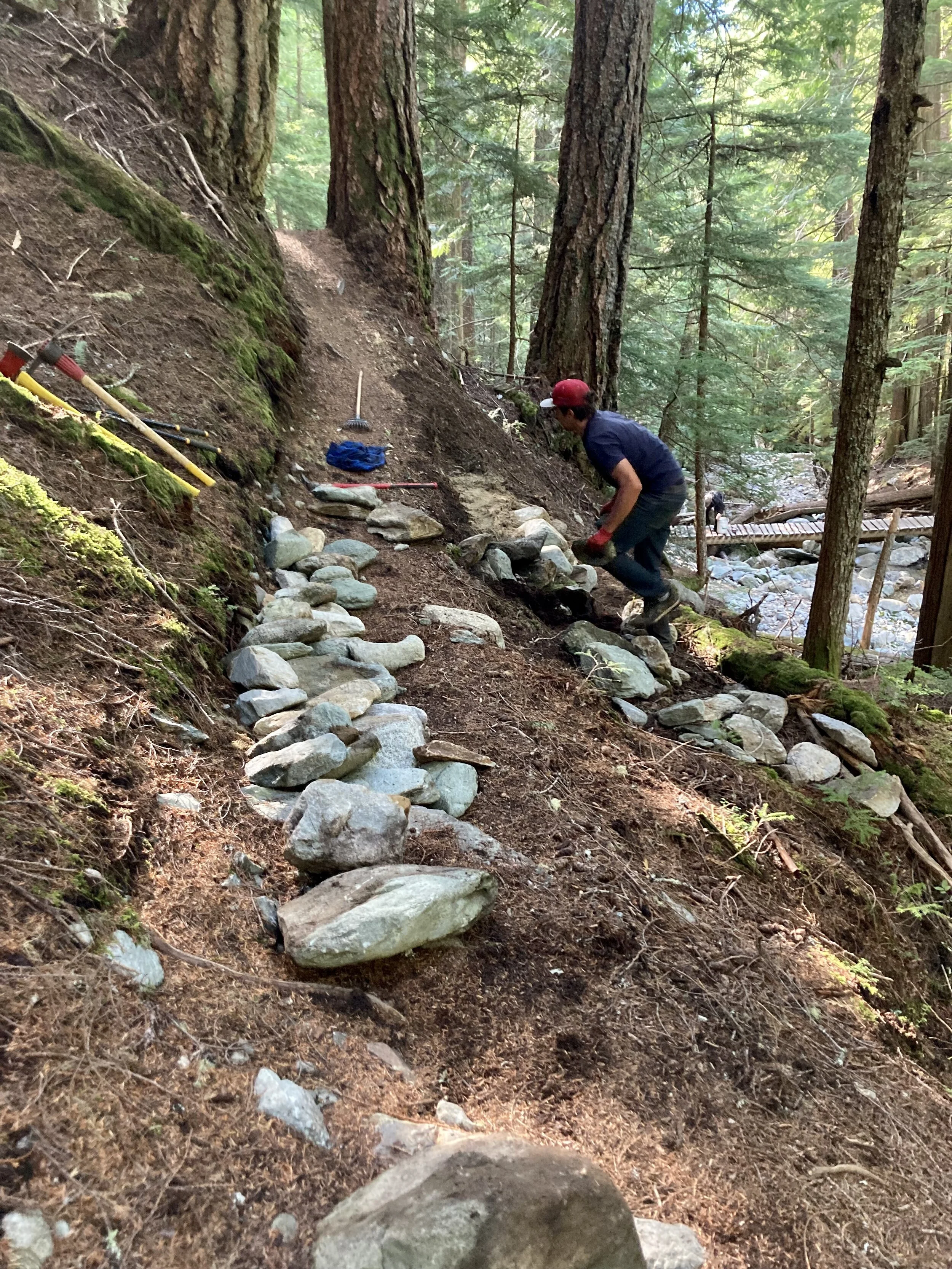 I mentioned signs of “summer’s end” last week, and there is no clearer sign than seeing the crew roster shrink: Camie and Matthias are going away to University next week. Dax will also return to class a week later. We’ll definitely miss your muscles and humour! I know that your trail building grit and initiative will also serve you well in academics.