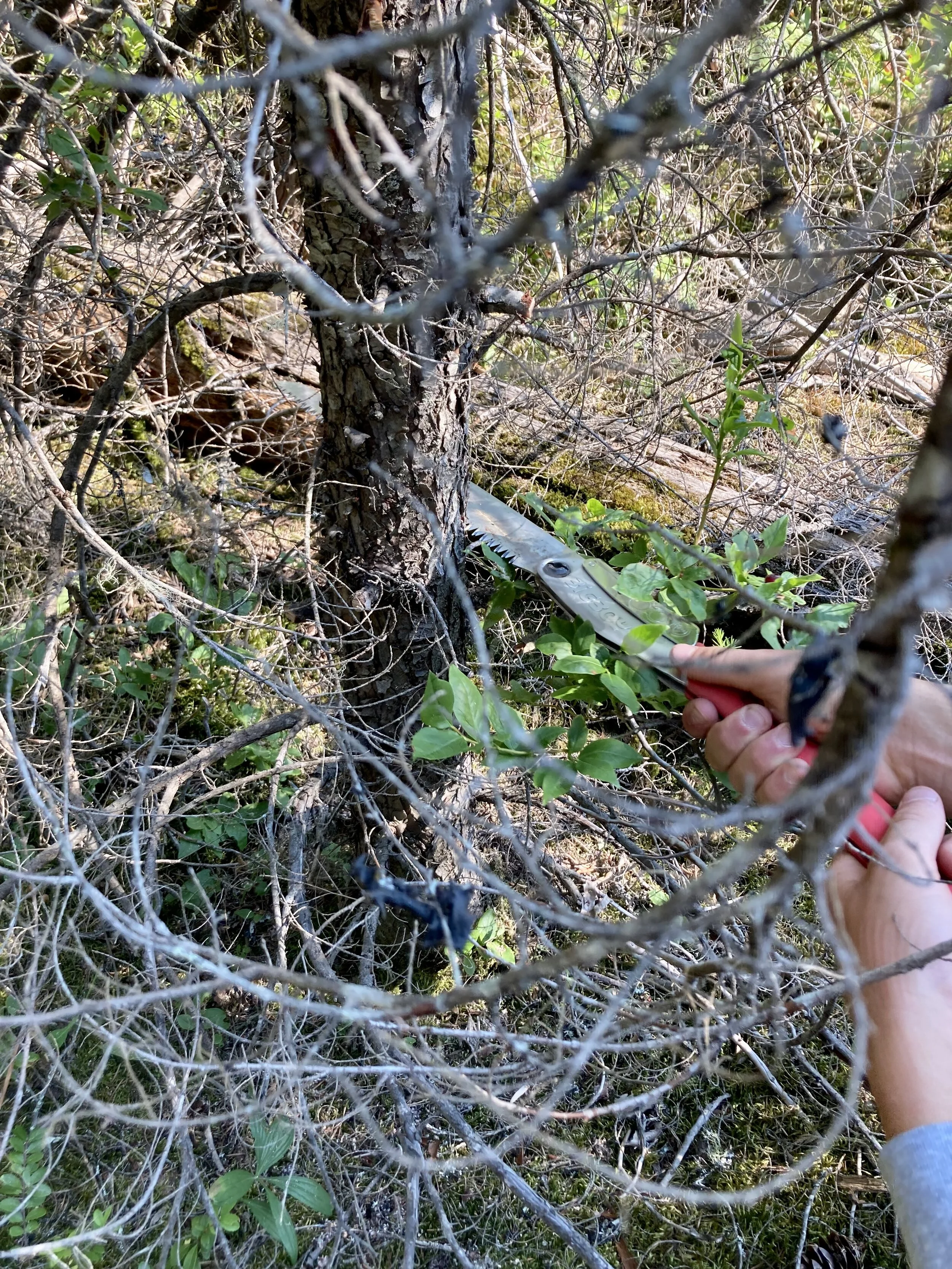 Luckily, it was a small tree... despite its diminutive stature, Pat was pinned! Benoit came to the rescue and all Pat had to show for the tree assault was a scratch.