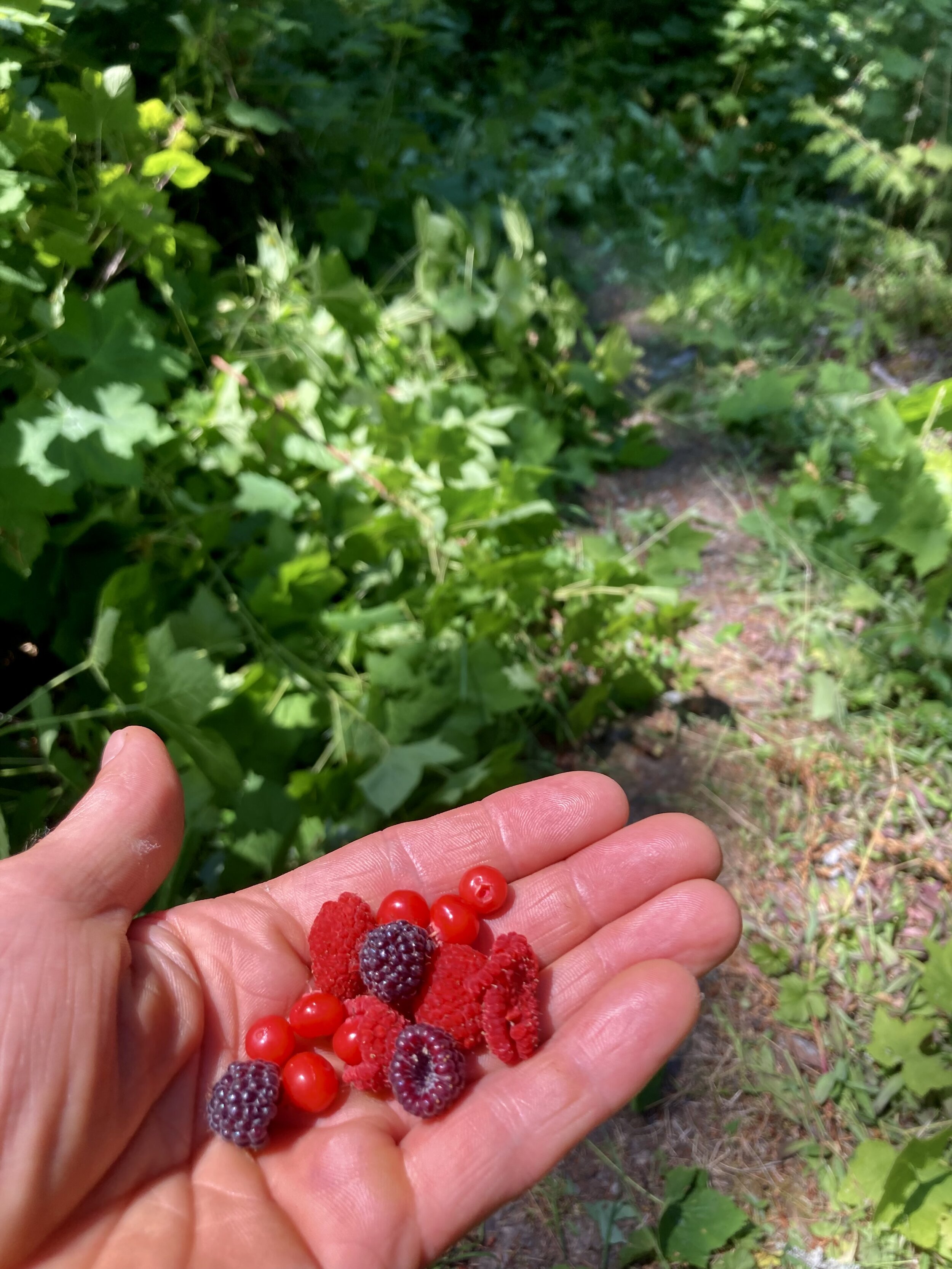 It seems all of the berry varieties are ripening at once this season. I’ve sampled some great Alaskan Blueberries, the usually tart Red Huckleberries are sweet, and there are enough purple Huckleberries to forgo bringing a sandwich. Standouts have been the jammy Thimbleberries and candy grade classic Raspberries. Please try to leave some for the bears!