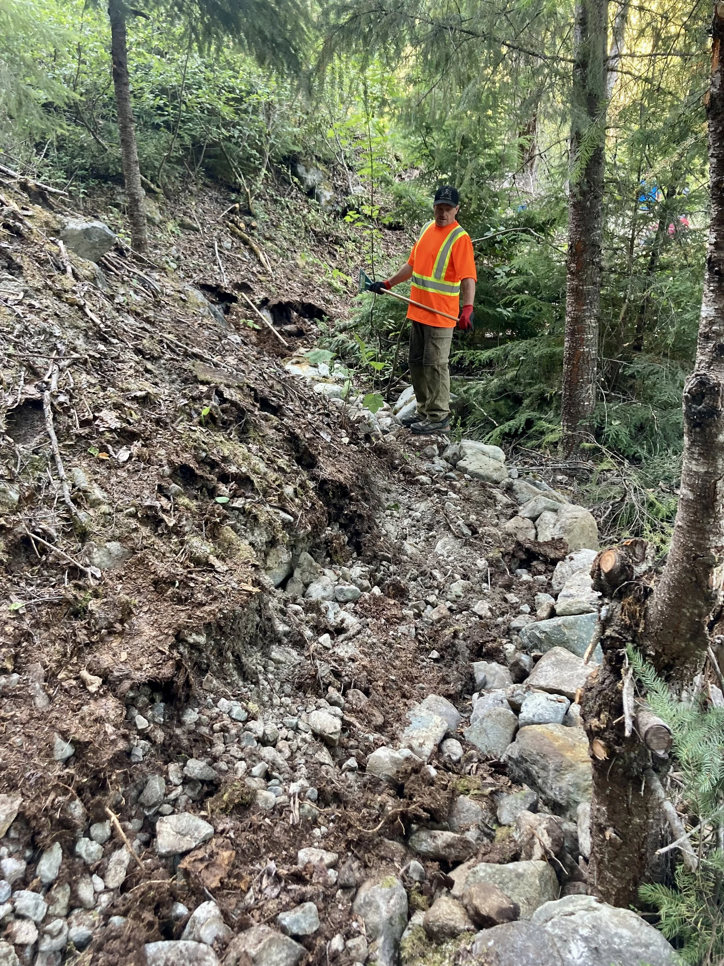 “There’s a trail up by ***top secret*** that I’ve been poking at for a few months, but frankly, I’ve put the tools down for the summer since it’s so dry”