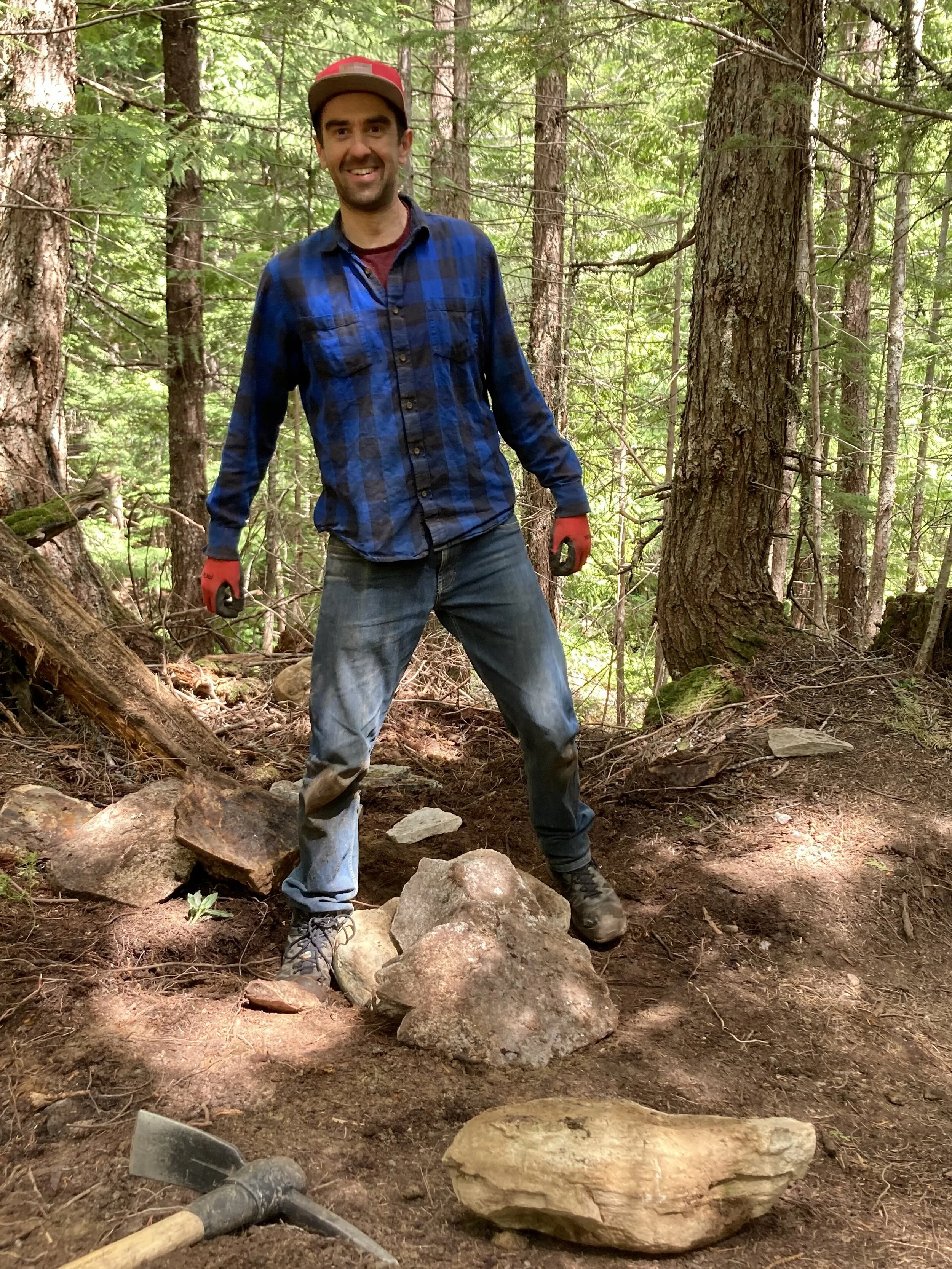 It’s amazing how much stuff flies (pun intended) at our eyes at work. Beyond the obvious chainsaw shrapnel and hammering chips, sticks and dirt can ricochet when we dig and tree branches try to stab when we need to venture off trail. Most annoying of all: Black Flies always go for the eyeballs! I’d like to extend a huge thanks to Ryders Eyewear for again providing the trail crew with anti-fog protective eyewear!