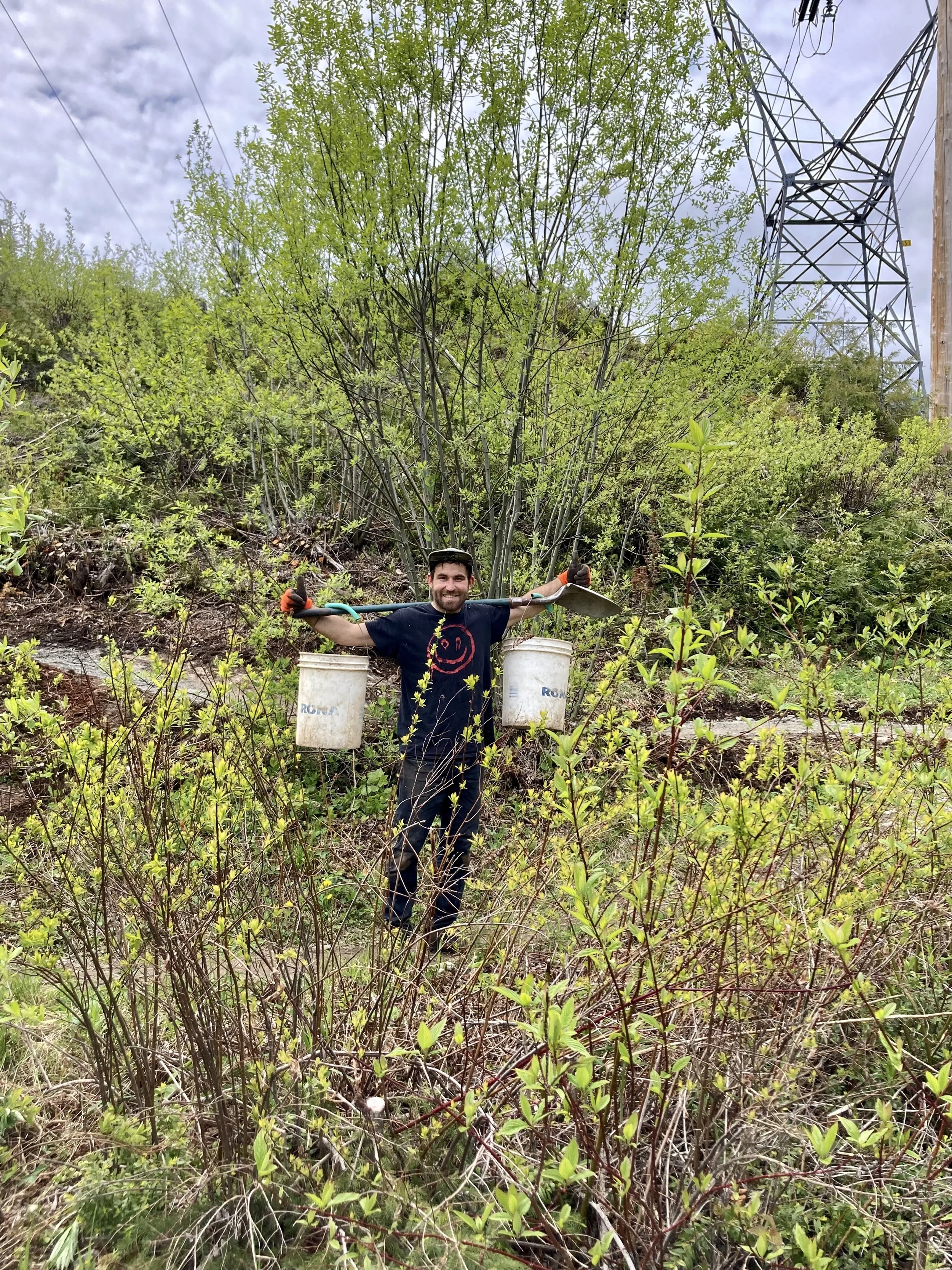 So far this season, we’ve been bundled up in thermals and rain gear. This led me to be in absolute shock under the power lines while tuning up the Whistler Waldorf work on Robin Yer Eggs. Distracted by the orchestral bird calls and critter visits… racoon, coyote, deer… I failed to notice the late spring sun trying to assert some summer rays. My neck and ears will serve as the crew’s reminder that sunblock should be in the pack every day.