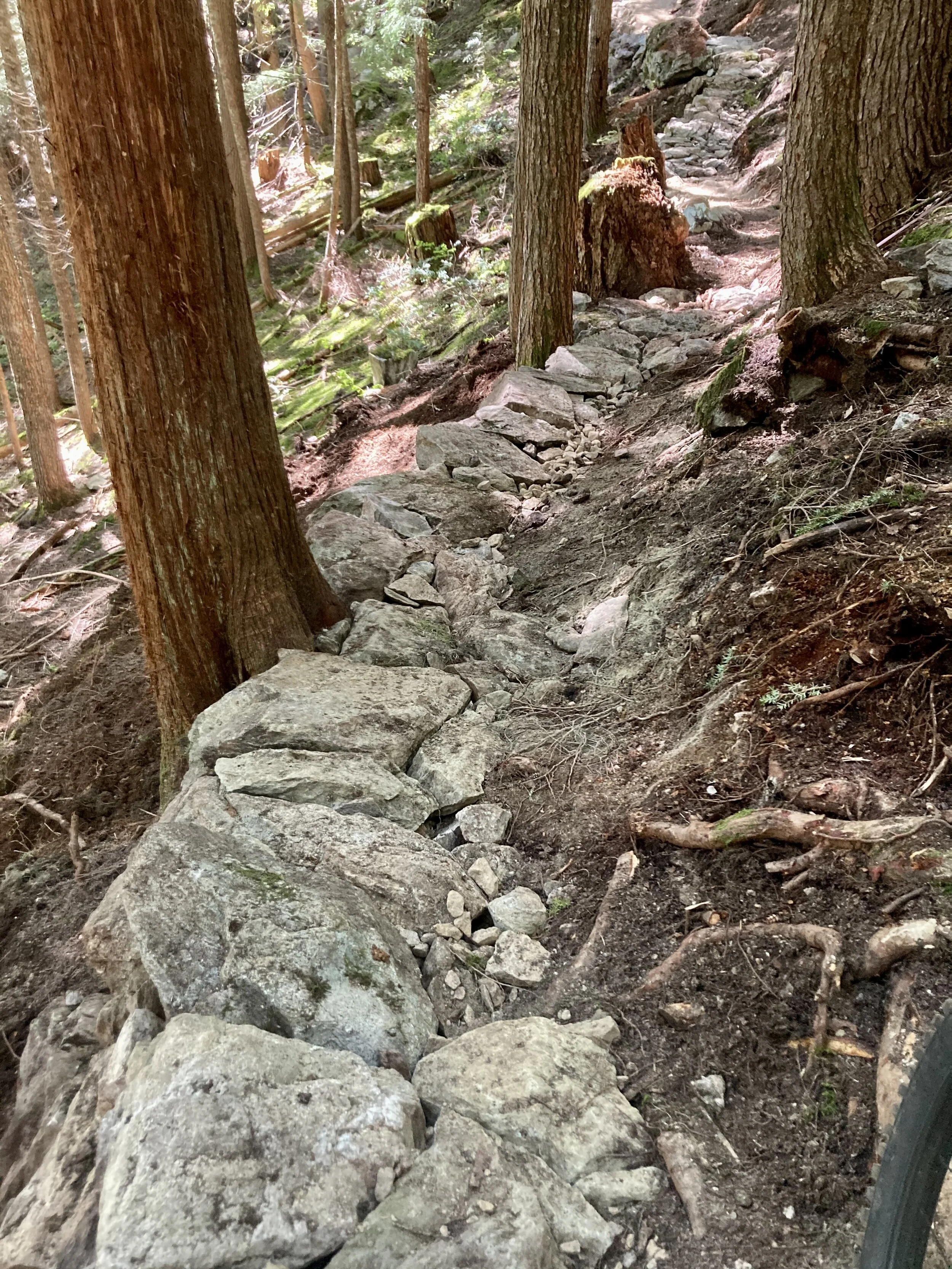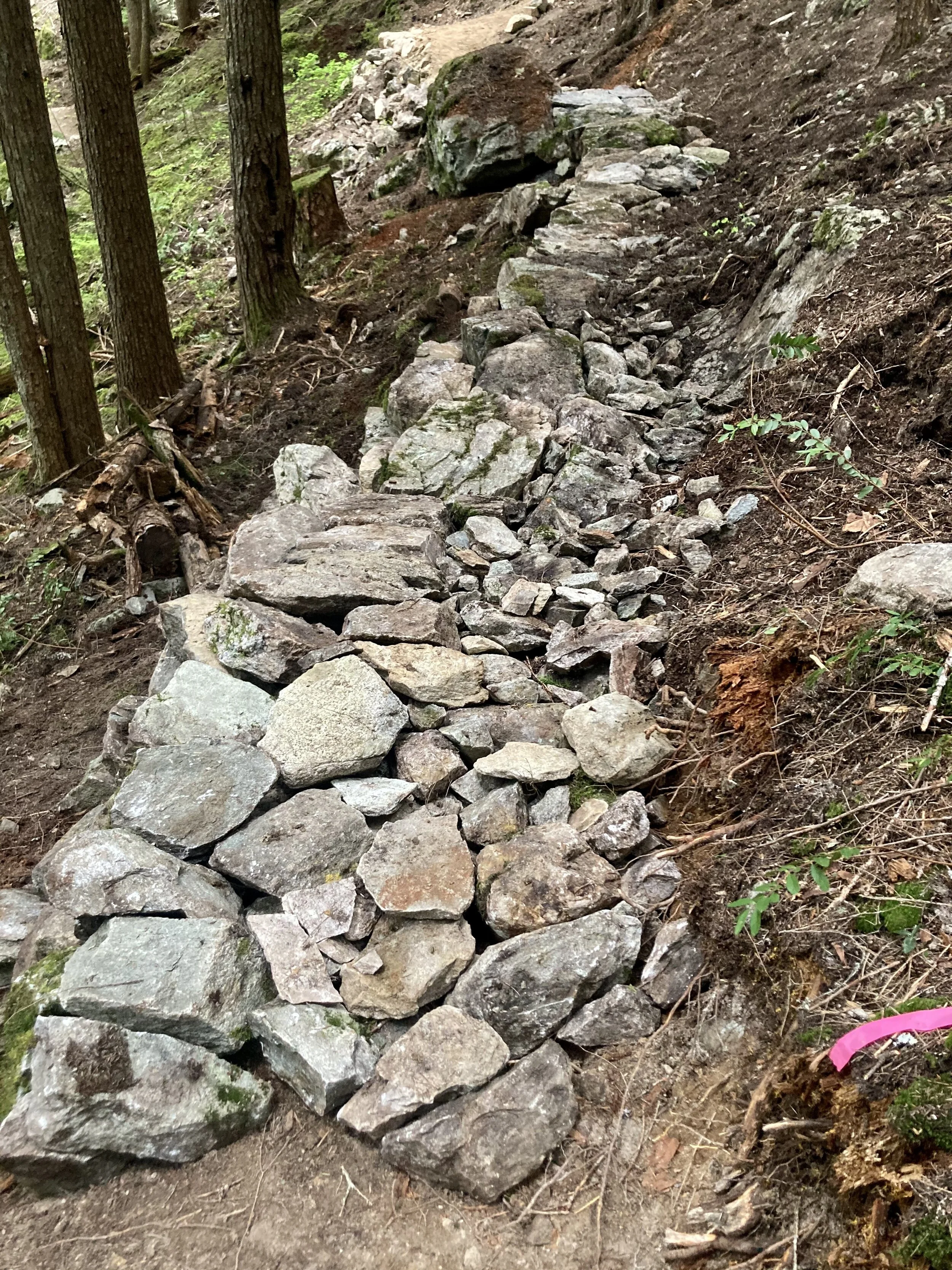 I’ve been a fan of Ken Melamed’s stone masonry since the first time I rolled over the chocolate mint drop (on Gargamel). He has placed countless stones around the valley and led efforts on the most bold volunteer night projects since then. We (the trail crew) use “Ken Melamed level” as the gold standard when a section of rockwork needs to live up to it.