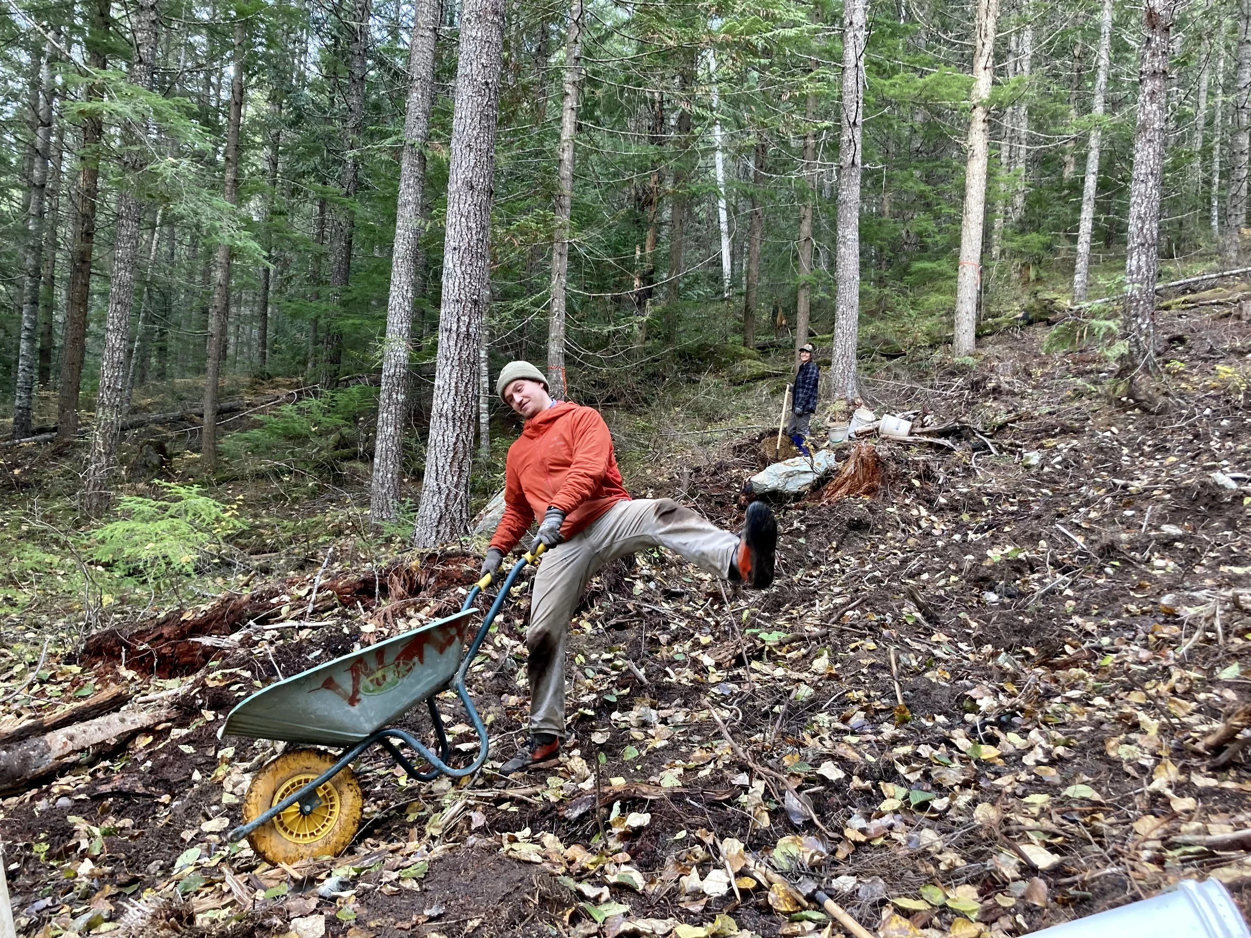 “Those big rock ramps on Yummy Numby turned out really cool! There were so many fun projects… Also: armouring around all the roots for the climbs and that thing that could have been a bridge but we used only rocks on Lord of the Squirrels” - Benoit