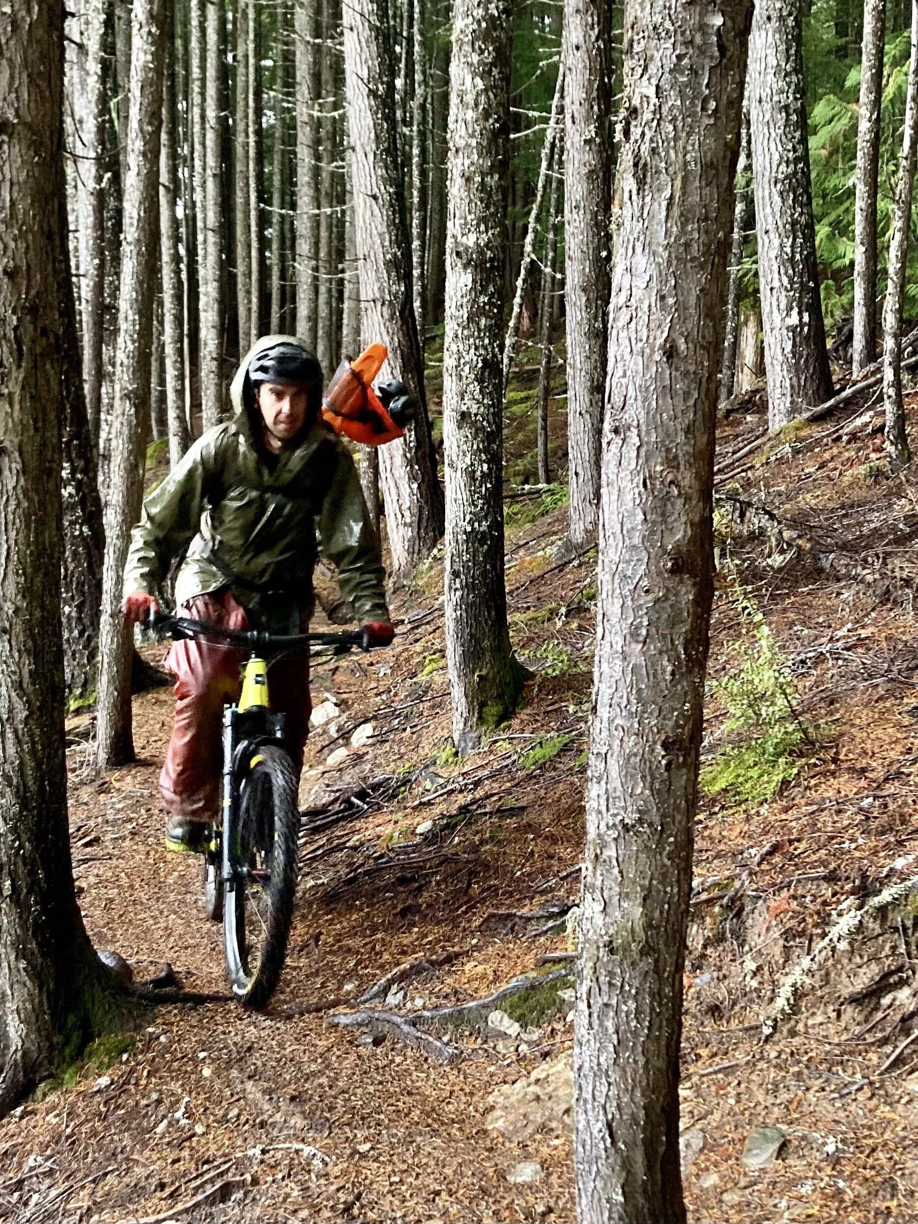 With Temperatures dropping, we stayed in the valley for the rest of the week. I’d been saving projects on Hot Dog Alley for this time of the year. The cold rain has made dirt work possible again and we moved a lot of it! We’re wrangling the crux moves back down to the intended blue rating of the trail (intermediate) and smoothing out chunky sections.