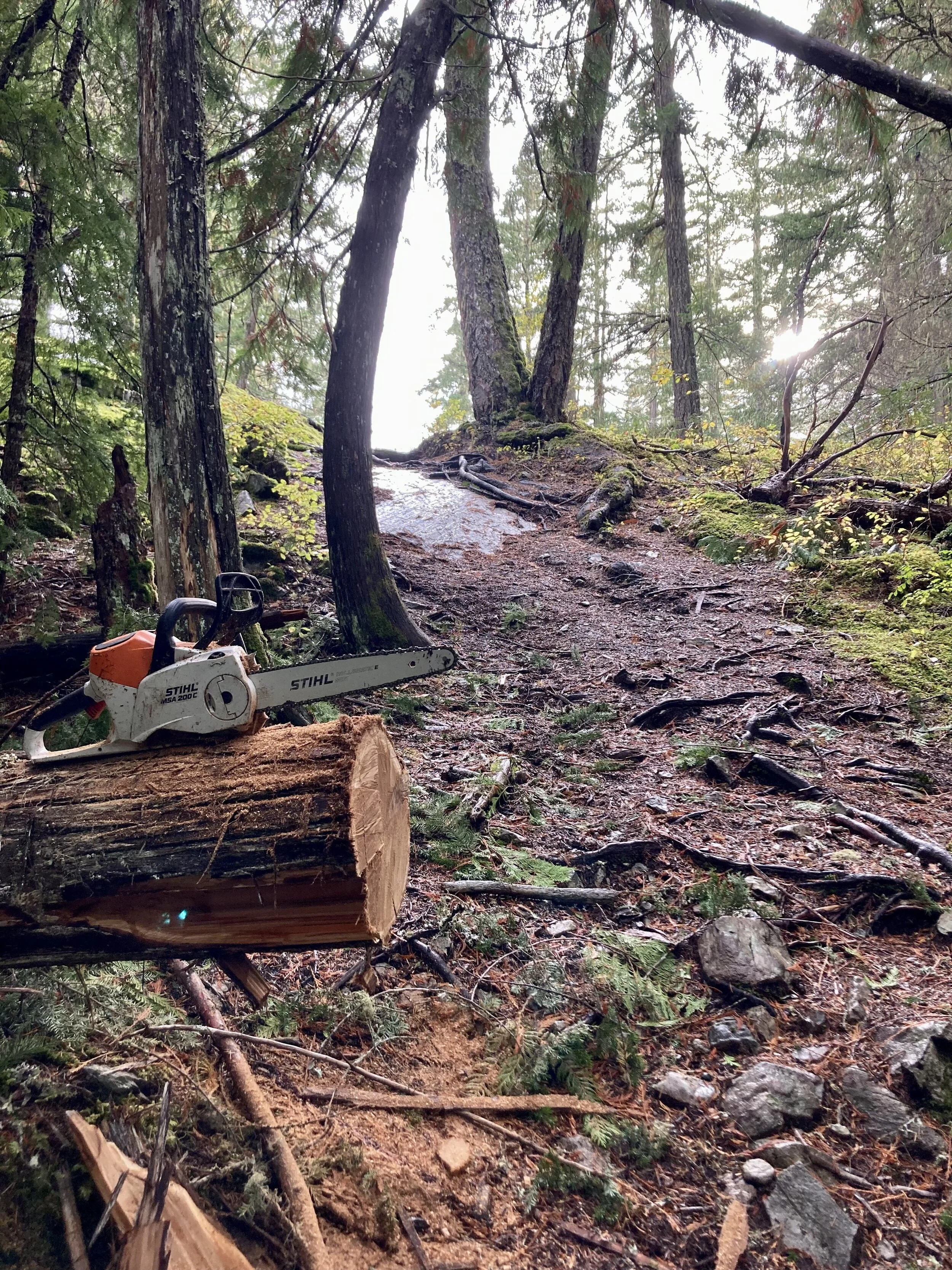 Drains were cleared, tread was out-sloped and we widened the climb section at the treeline.