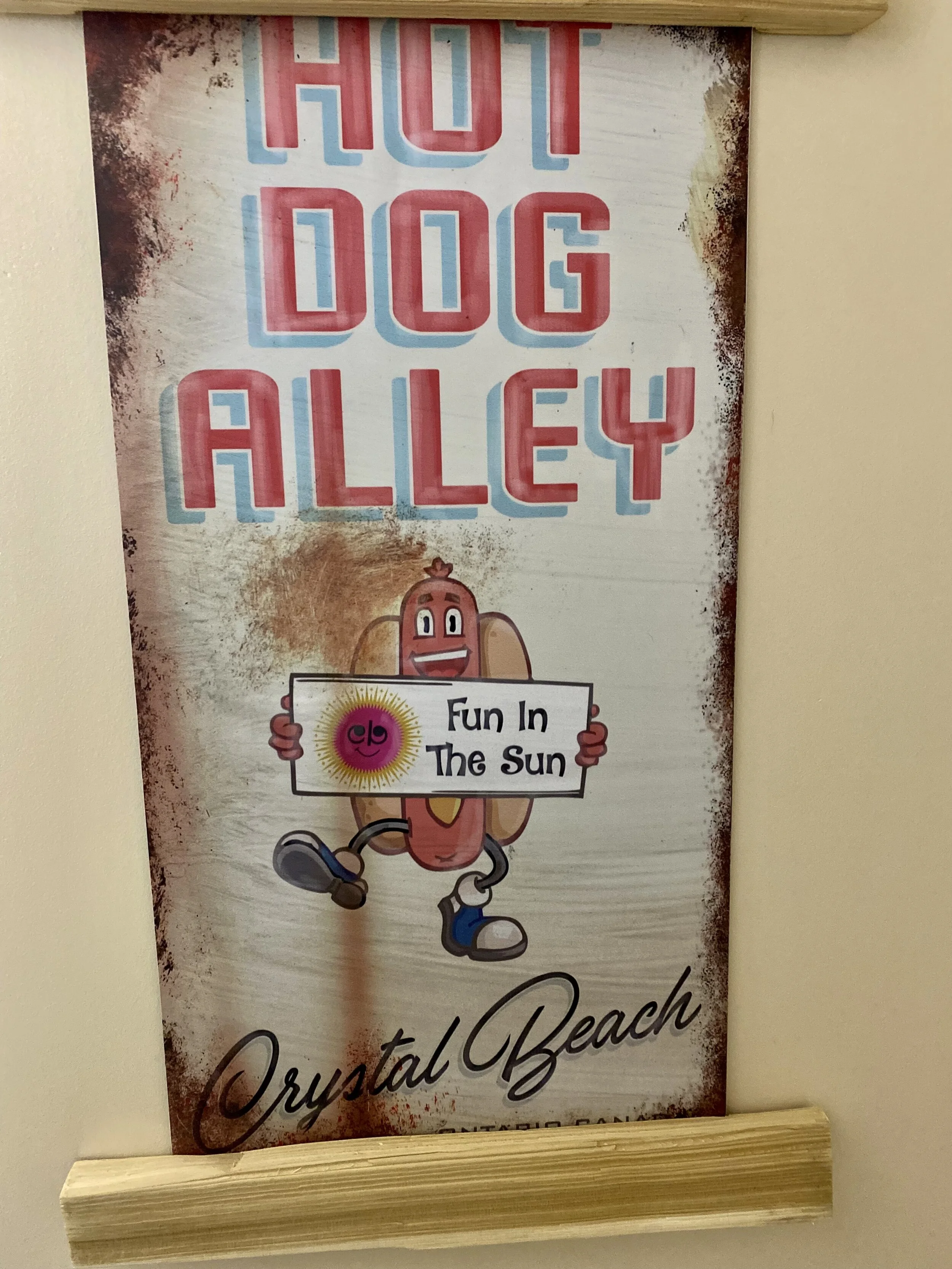 Working under the constant buzz of the high tension wires reminded me that I had misunderstood the trail name story: I thought it was related to gas station hot dogs cooking for hours under heat lamps. I was close: It turns out Tim Haggerty’s dog “buddy” kept getting zapped while they built the trail. Also, Tim grew up near Crystal Beach which had an area called HOT DOG ALLEY (All caps. really.).